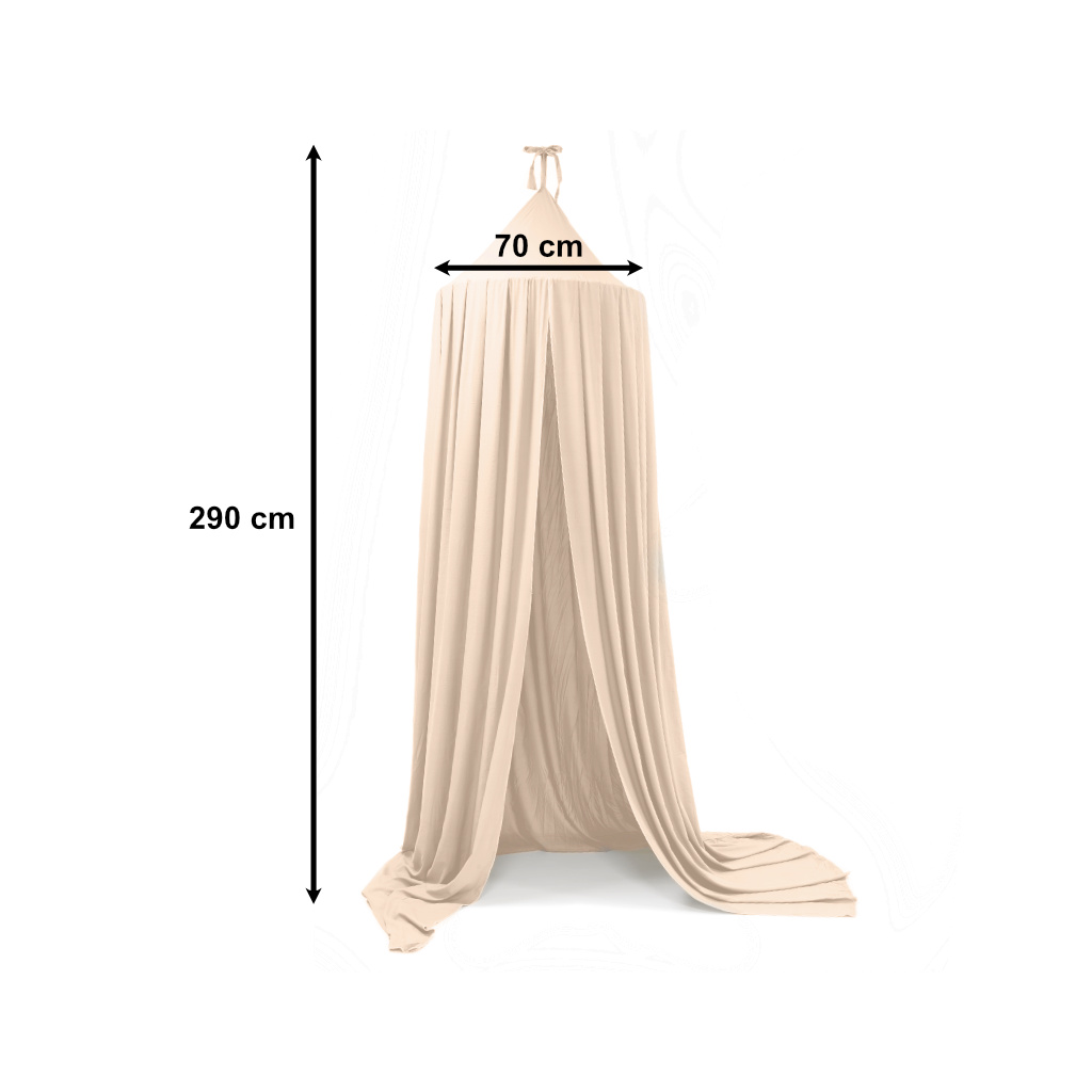 Beżowy baldachim to piękna ozdoba pokoju. Delikatny kolor i zwiewna tkanina dodadzą wnętrzu uroku i przytulności. Kurtyna doskonale wkomponuje się w każdą aranżację, niezależnie od stylu, w jakim urządzony jest pokój. W zestawie znajdują się niezbędne elementy potrzebne do zamocowania baldachimu.