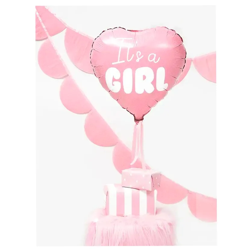 Różowy balon w kształcie serca i napisem „It’s a girl” – doskonała ozdoba na baby shower lub geneder reveal. Wymiary: 48 cm.