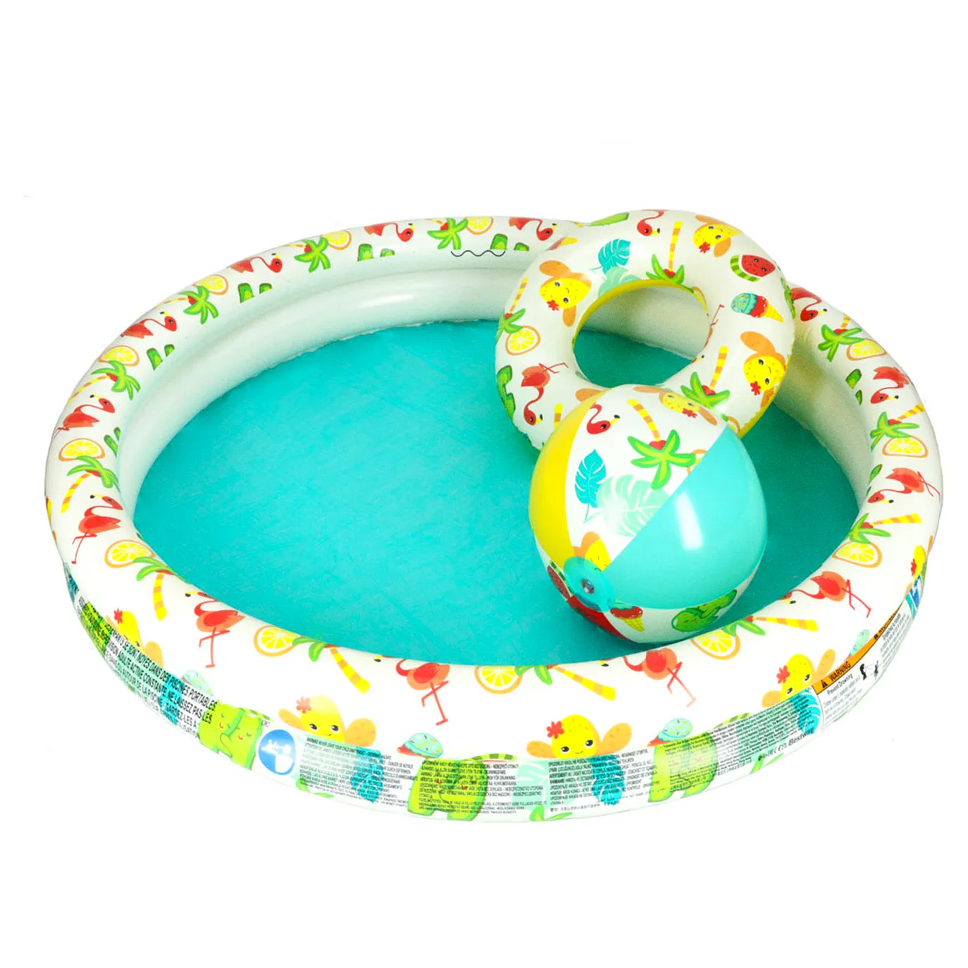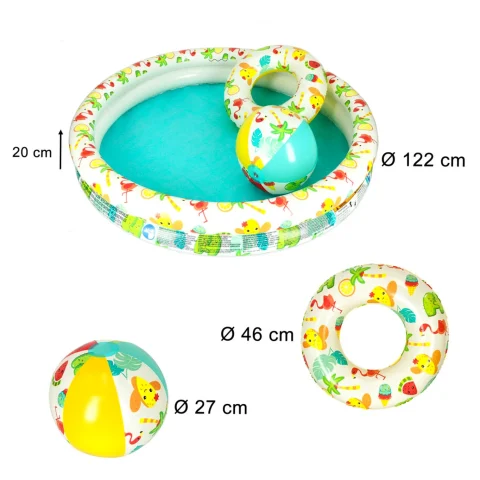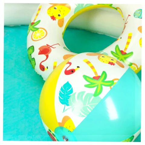 Basen + piłka + koło = fantastyczny zestaw do zabawy w wodzie. Czy może być coś lepszego? Oczywiście – gdy dodatkowo zestaw jest w uroczą grafikę. I dobrze się składa, bo ten właśnie taki jest!