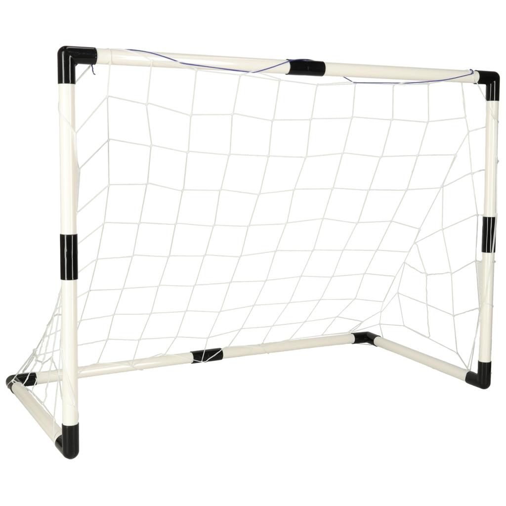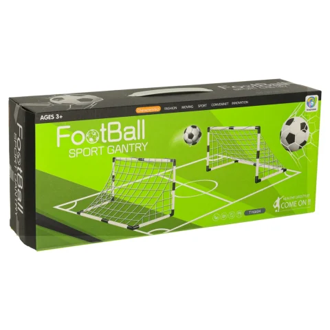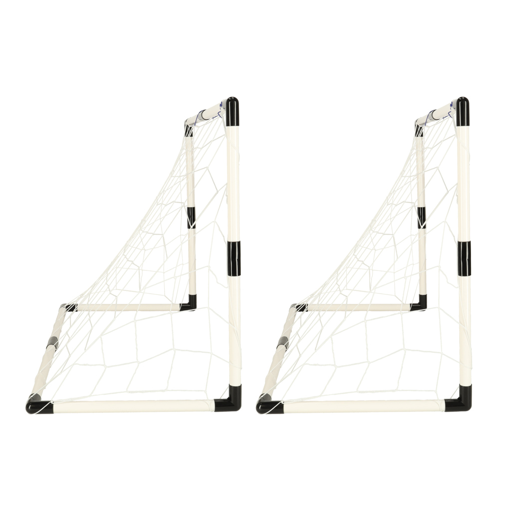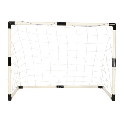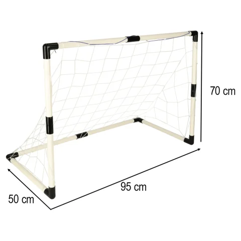 Zestaw zawiera: 2 x bramka do piłki nożnej, 2 x piłka, 1 x pompka, siatka do bramki piłkarskiej, elementy montażowe, instrukcja. Wysokość bramki: 70 cm, Szerokość: 95 cm, Głębokość: 50 cm, Średnica rurki: 2,5 cm, Średnica piłki: 12 cm, Wiek dziecka: 3+