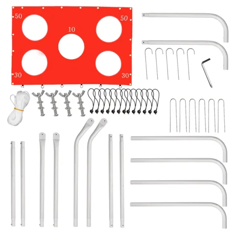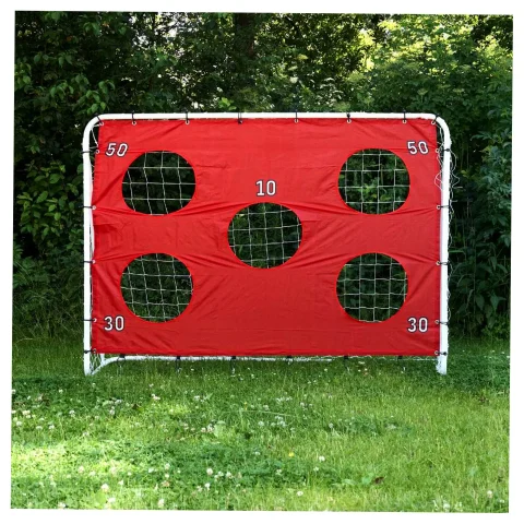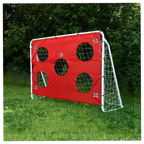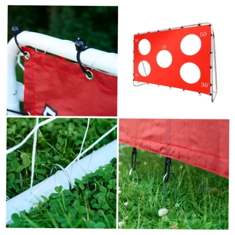 Duża bramka piłkarska 2w1 (215×153×76 cm) z matą celnościową z 5 punktowanymi otworami. Konstrukcja ze stali ocynkowanej, wytrzymała siatka, szybki montaż. Idealna do ogrodu. Zestaw zawiera komplet akcesoriów i elementów montażowych.