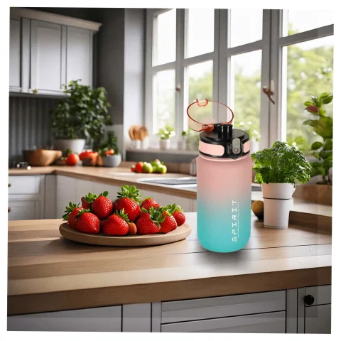 Wypijanie dużej ilości wody jest wskazane do prawidłowego funkcjonowania organizmu, a widoczne postępy przyczyniają się do utrwalania zdrowych nawyków. Butelka z miarką ułatwi sporządzenie dziennego, tygodniowego lub miesięcznego bilansu na bazie obserwacji. To butelka, której praktyczne zastosowanie docenią szczególnie osoby zabiegane – dosłownie i w przenośni. Bidon z ustnikiem znajdzie zastosowanie u osób prowadzących zarówno aktywny, jak i siedzący tryb życia. Wieczko z klamrą typu „klik” zabezpiecza zawartość butelki przed przelewaniem się.