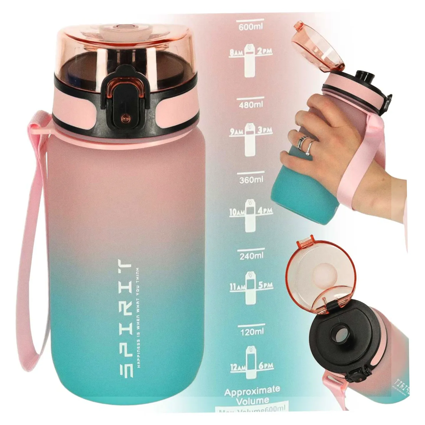 Bidon na wodę z miarką to praktyczny dodatek, który ułatwi bieżące monitorowanie wypijanej wody w ciągu dnia. Umieszczone na niej wartości i infografiki mogą być przydatne dla osób, które chcą wprowadzić nawyk codziennego picia wody. Maksymalny poziom wody w butelce wynosi 600 ml – można łatwo dostrzec ile wypiliśmy wody w określonym czasie i ile nam jeszcze brakuje do zalecanego poziomu. Dokładne parametry można potem odnotowywać w telefonie lub w dzienniku.