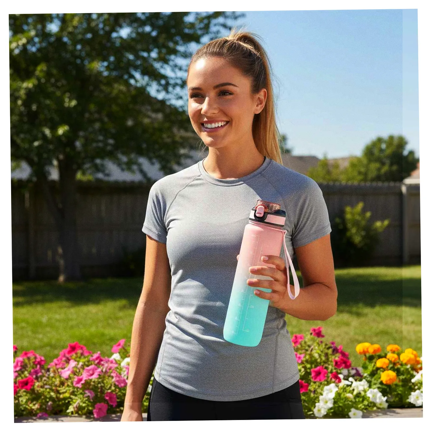 Różowo-niebieska butelka na wodę 1 litr: