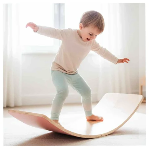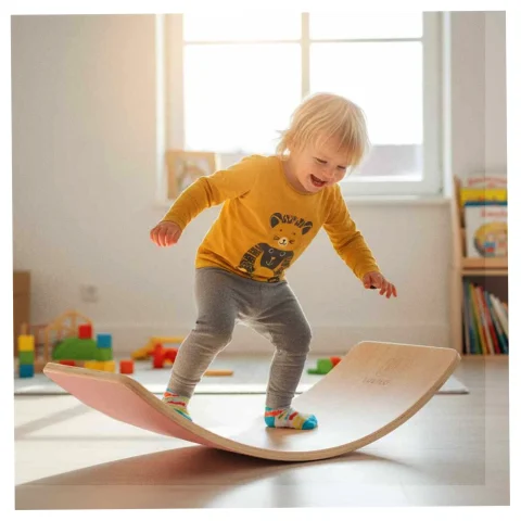 Kołysząca się deska balansująca to uniwersalne narzędzie do ćwiczeń ruchowych oraz ogólnorozwojowych. Służy jako trening balansu ciała oraz zmysłu równowagi – poprzez bujanie, dziecko może nauczyć się utrzymywania stabilizacji ciała oraz precyzji ruchów. Sprawdzi się jako element zabawy ruchowej dla dzieci lub rehabilitacji u osób dorosłych.