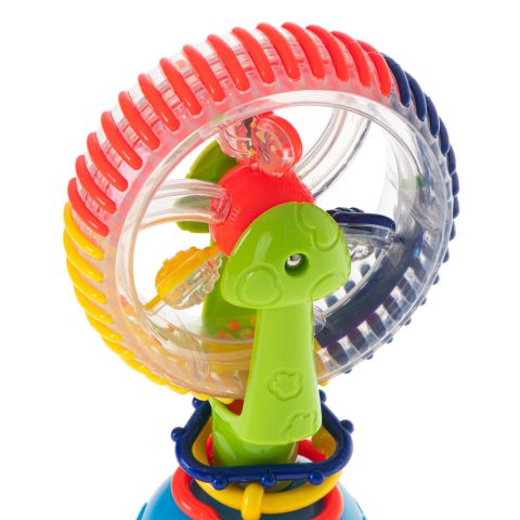 Przewracające się w środku kolorowe kuleczki pełnią funkcję grzechotki.