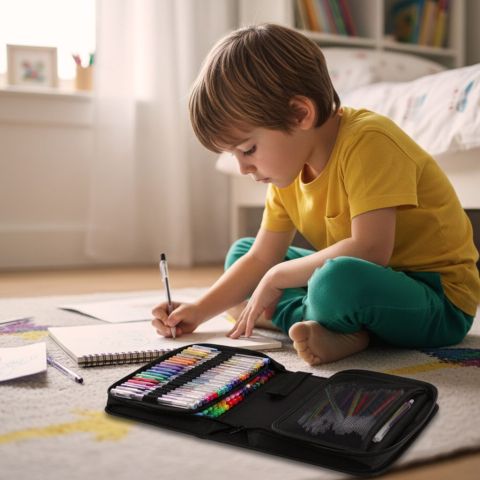 - Ma praktyczne rozkładane etui – piórnik z przegródką pozwoli mieć wszystkie przybory w jednym miejscu