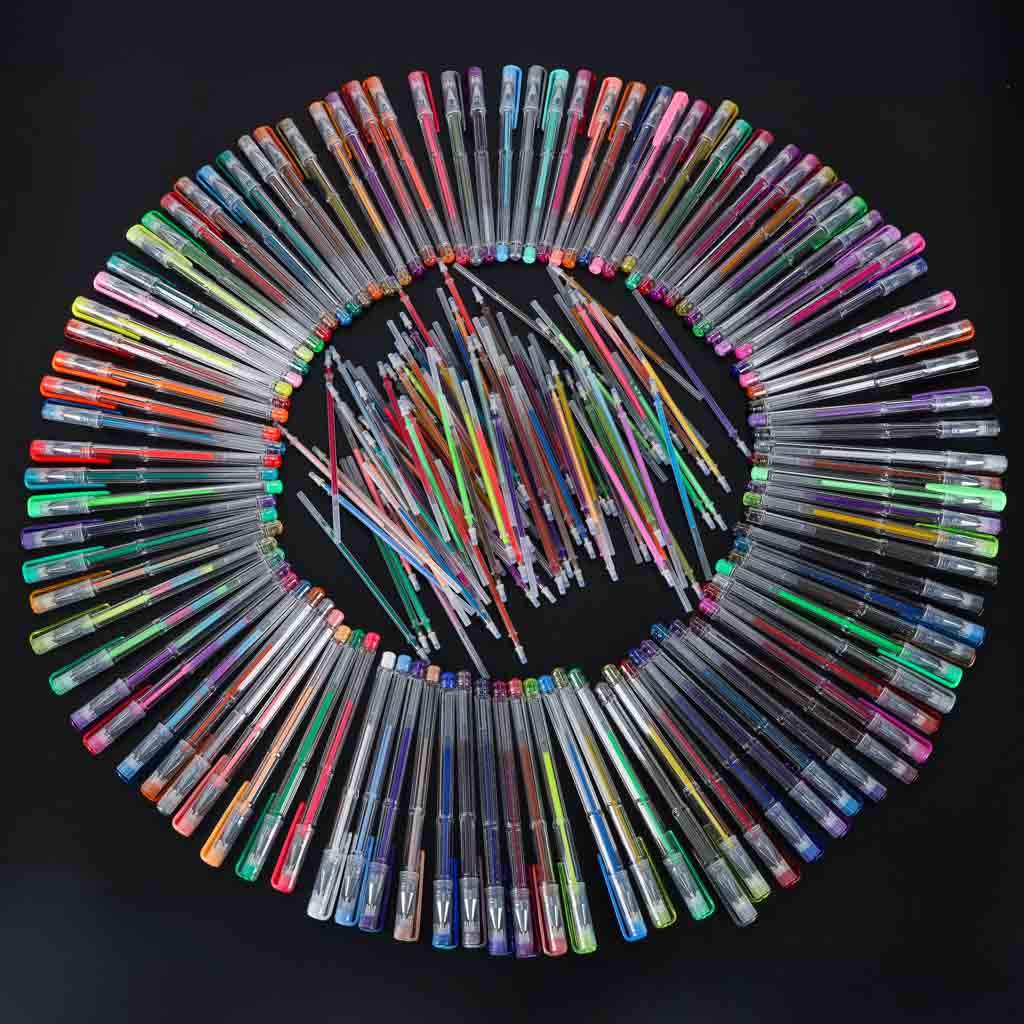 - Komplet 100 długopisów żelowych w rozkładanym etui