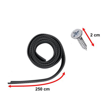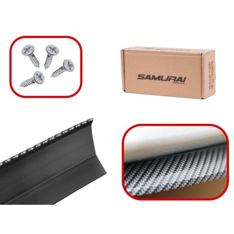 Dokładka do zderzaka ozdobiona wzorem 5D carbon. Pełni funkcję dekoracyjną i ochronną. W zestawie: taśma carbon, 4 śrubki i chusteczka odtłuszczająca. Prosta w montażu. Kolor: czarny. Tworzywo: guma. Wymiary: 250x5cm.