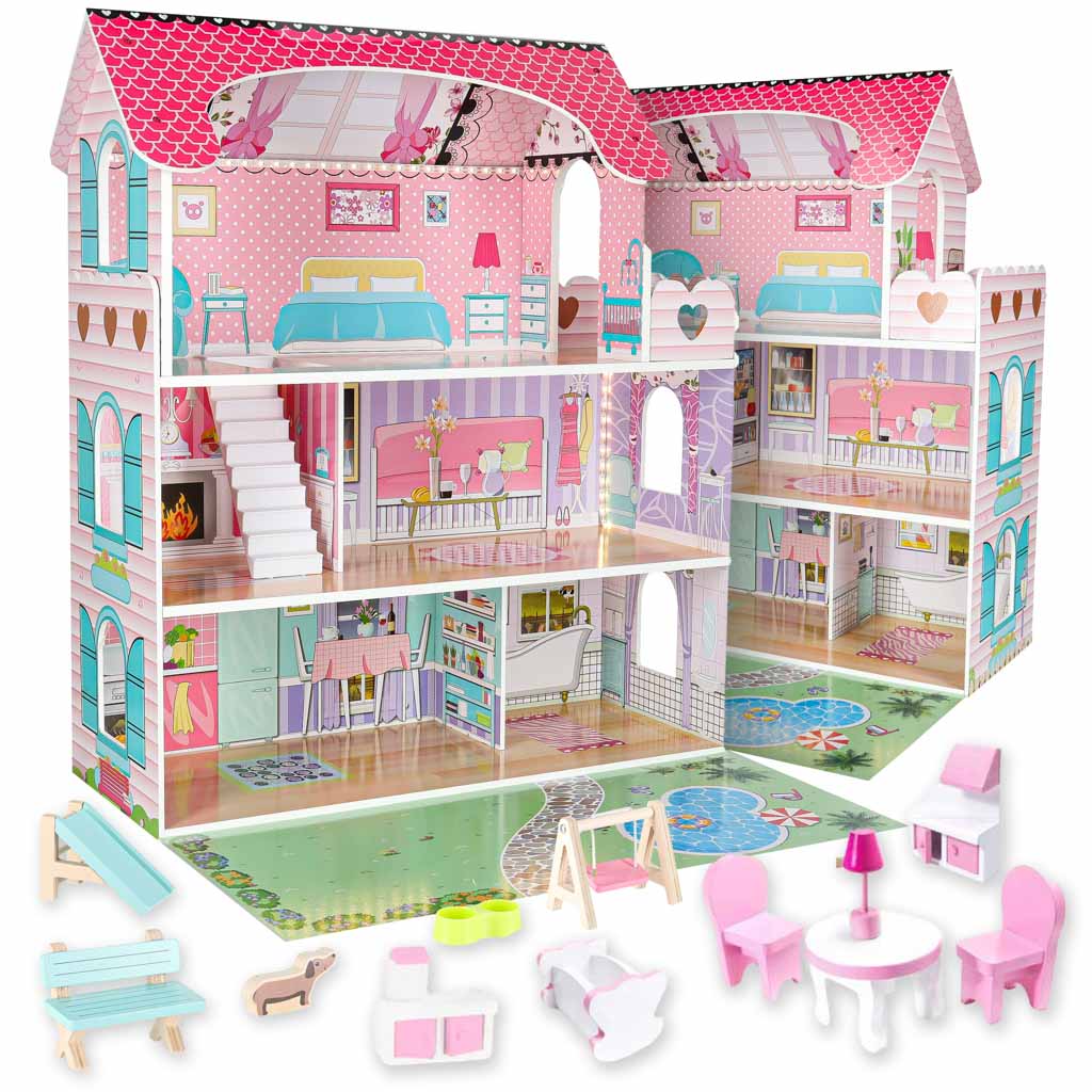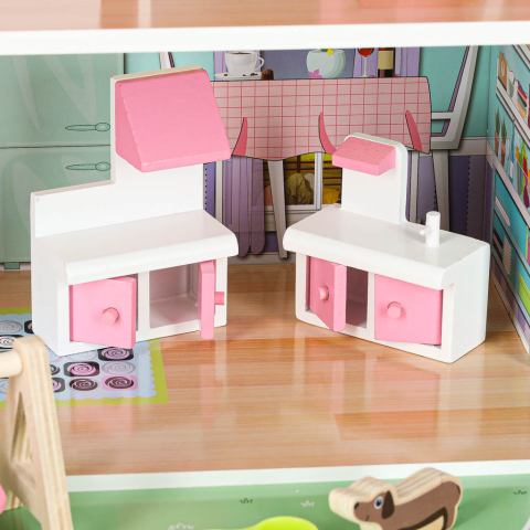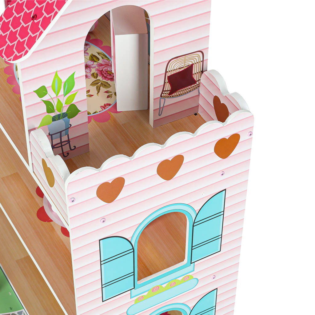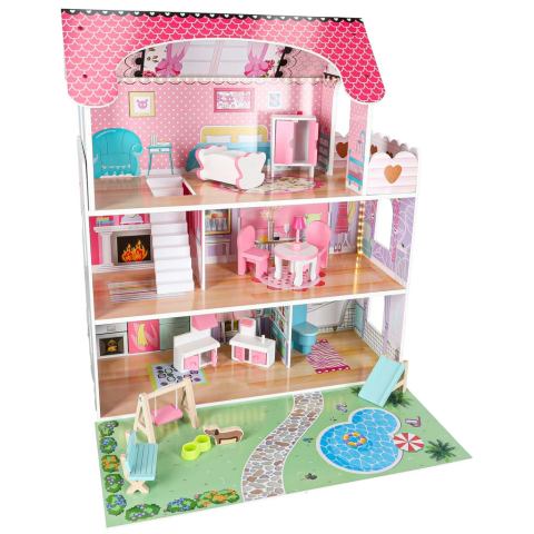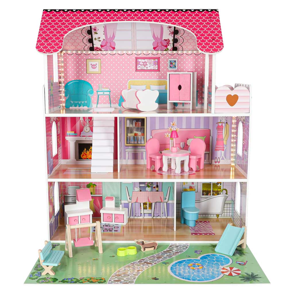 Domek dla lalek drewniany Lulilo Gardeno z ogródkiem mebelki 70cm różowy LED