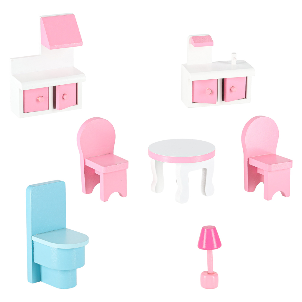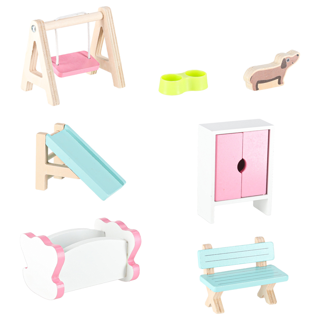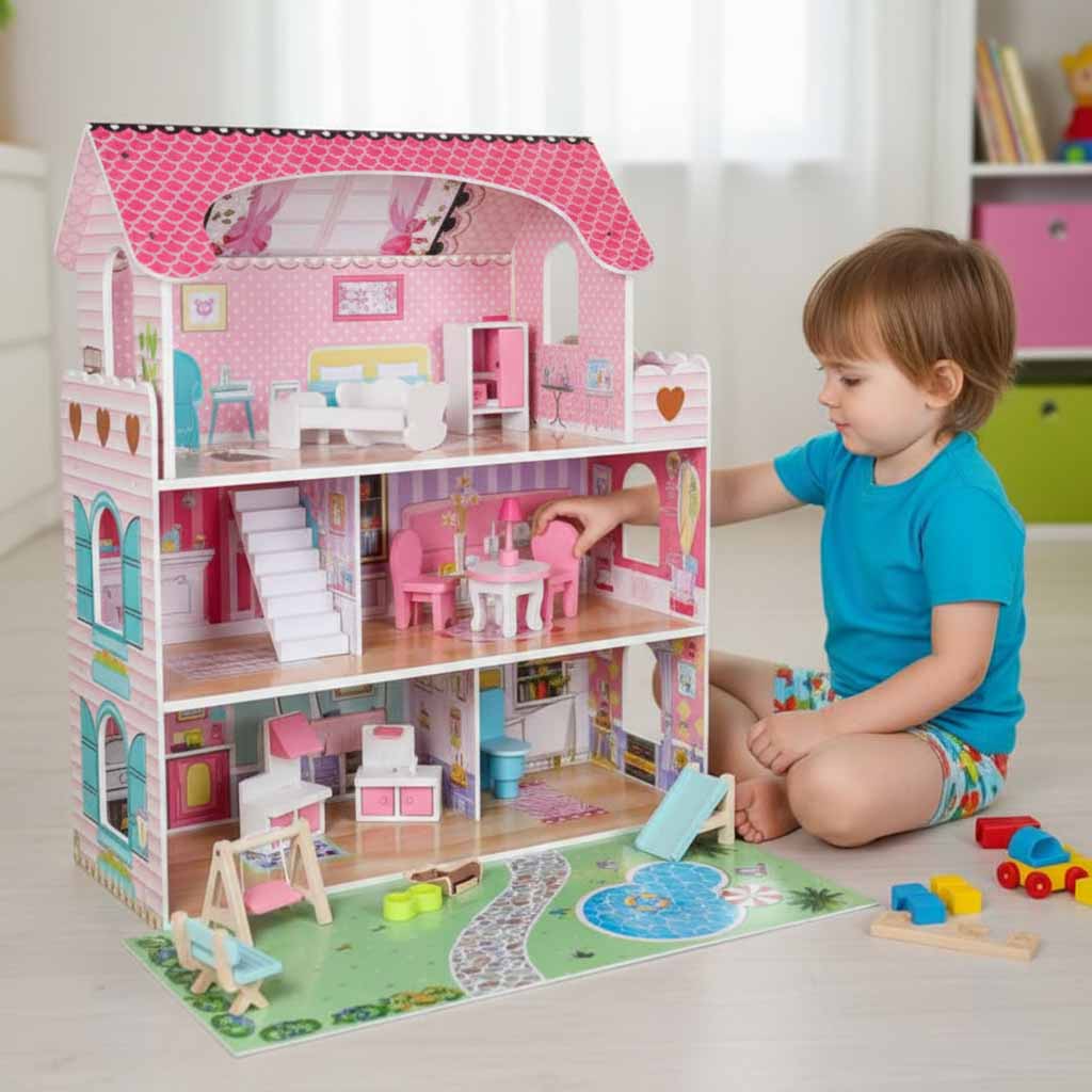Domek dla lalek drewniany Lulilo Gardeno z ogródkiem mebelki 70cm różowy LED