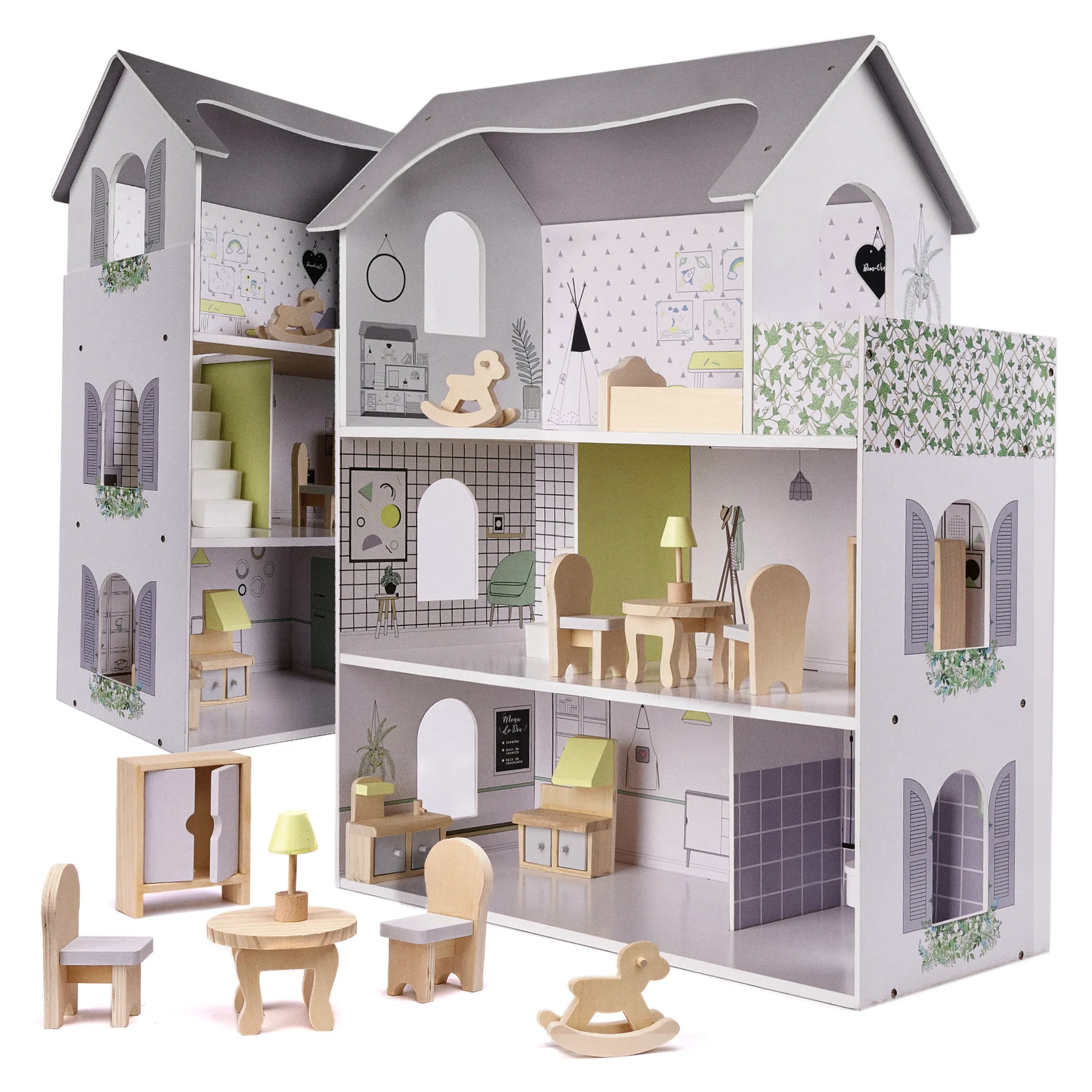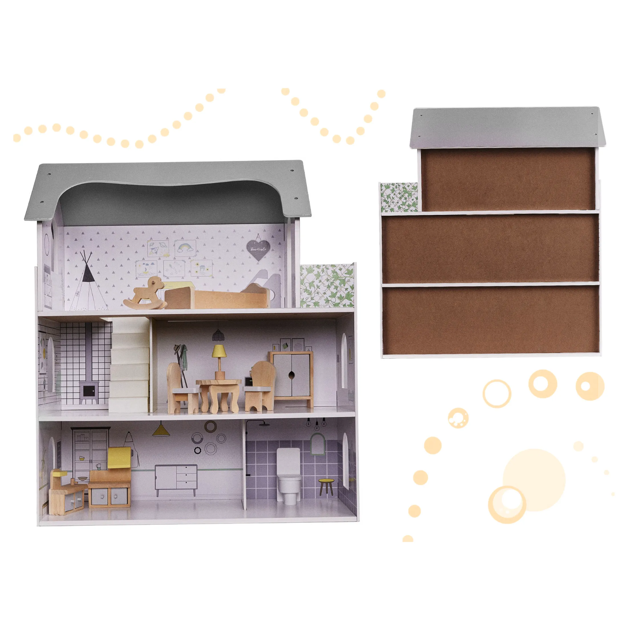 DOMEK DLA LALEK MDF + MEBELKI SZARY