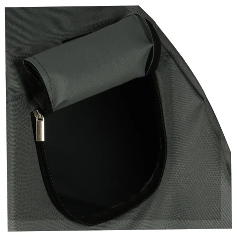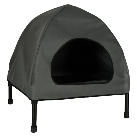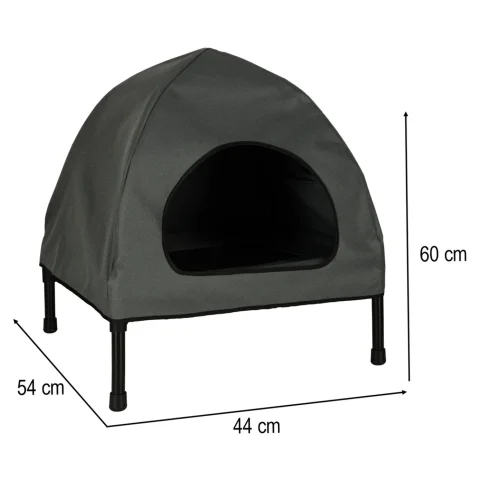 Materiał wykonania: wytrzymały poliester, metal. Kolor: szary i czarny. Całkowita wysokość (z nóżkami): 60 cm. Wysokość bez nóżek: 42 cm. Wysokość samych nóżek: 18 cm. Szerokość podstawy: 54 cm. podstawy: 44 cm. Wymiary wejścia: Szerokość: 31 cm. W