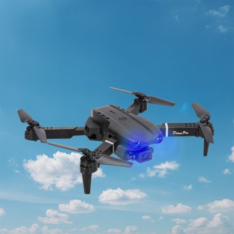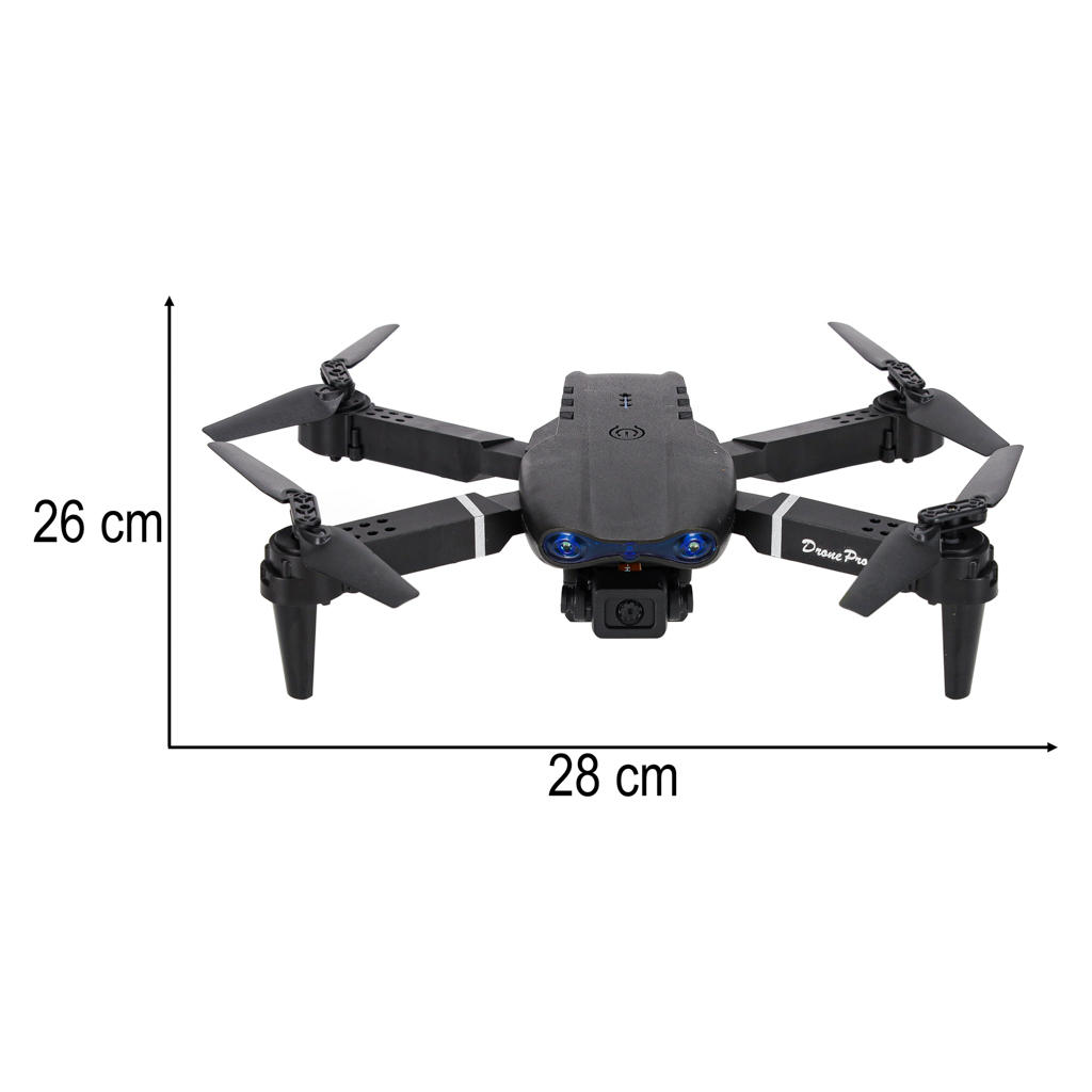 Dron RC z podwójną kamerą – do zabawy oraz do wykonywania zdjęć i filmów z lotu ptaka. To model RTF, który jest gotowy do startu po wyjęciu z pudełka. Porusza się we wszystkich kierunkach oraz podąża za osobą kierującą. Wymiary: 28 cm x 26 cm x 5 cm