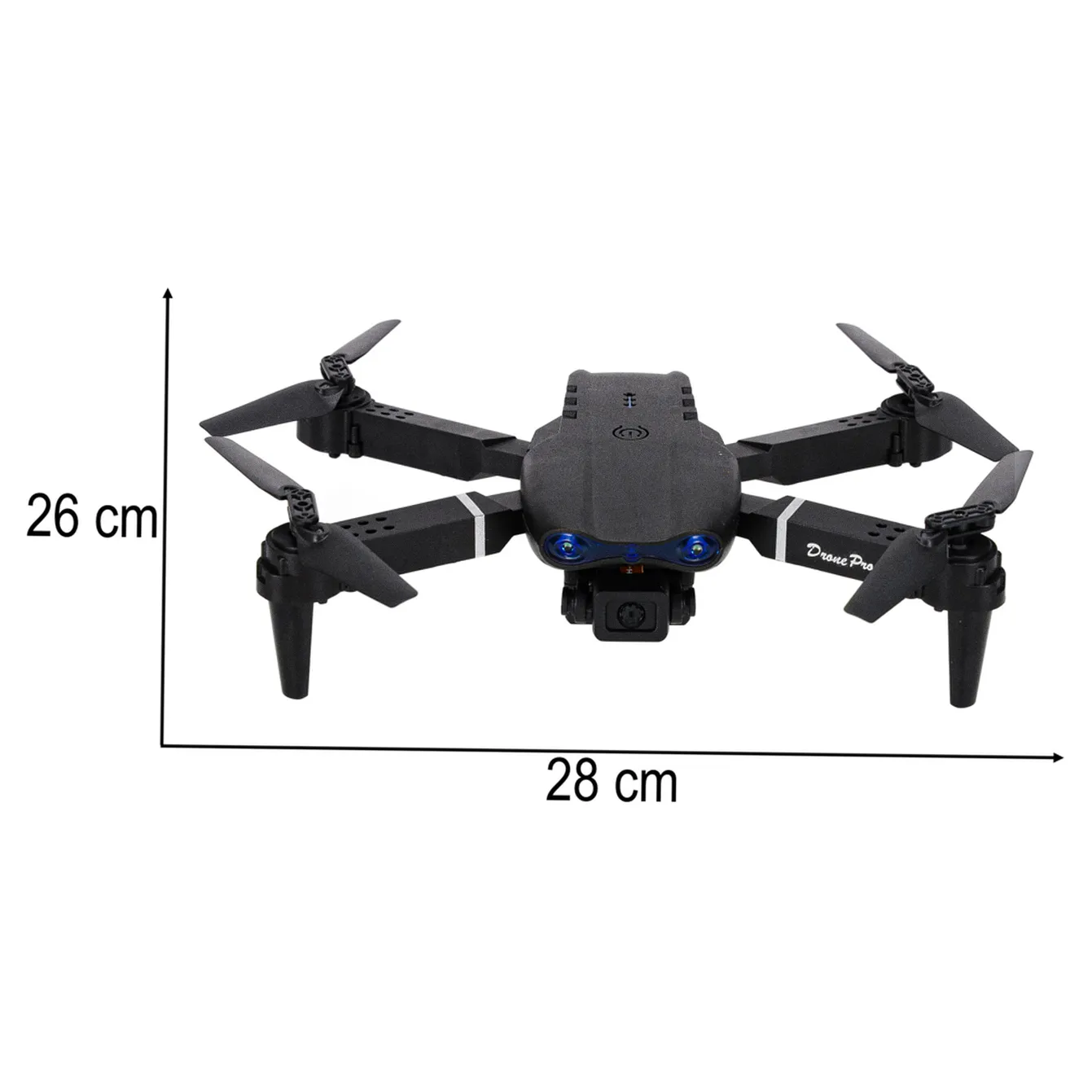 - Wymiary rozłożonego drona: 28 cm x 26 cm x 5 cm
