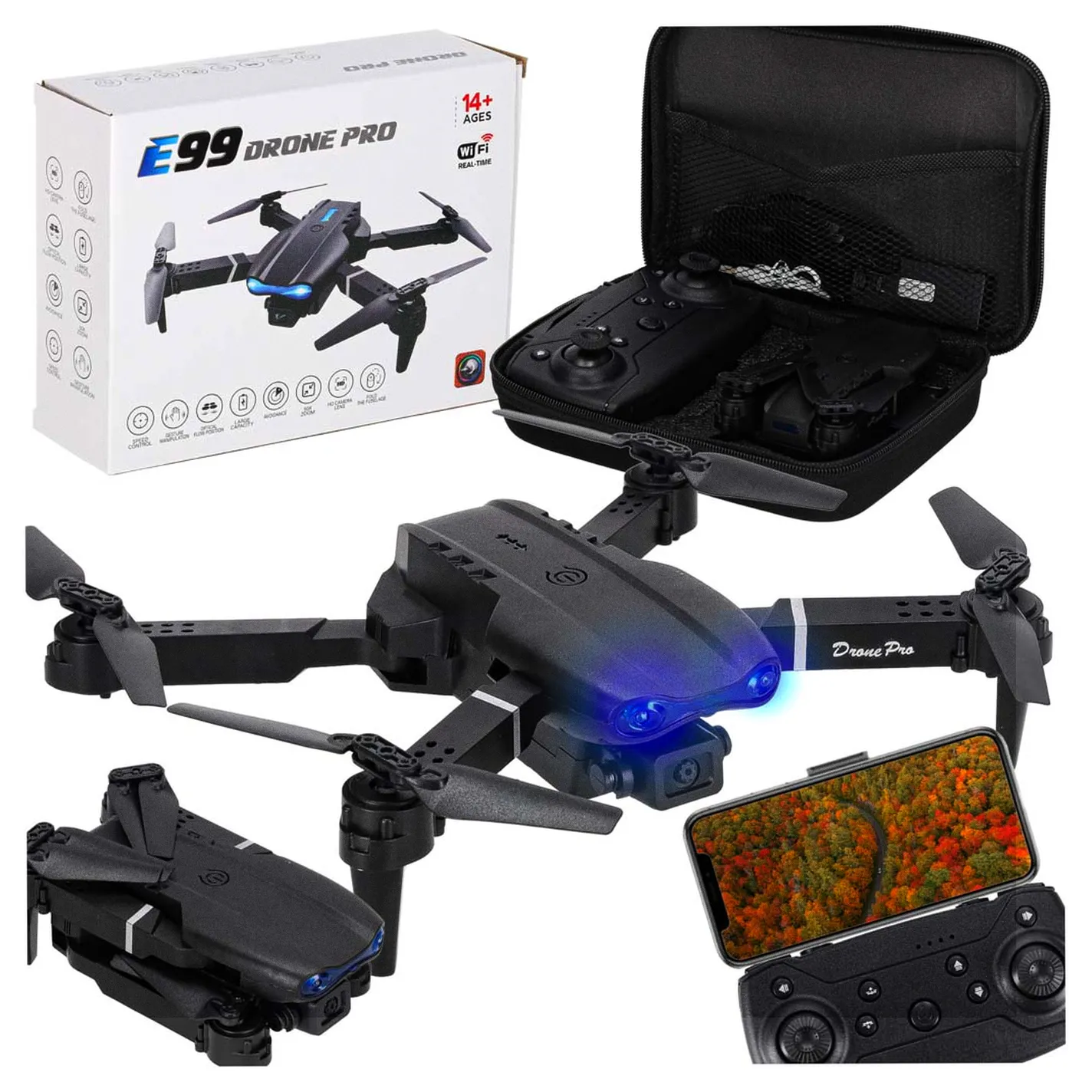 Zdalnie sterowany dron E99 Pro z etui grafitowy