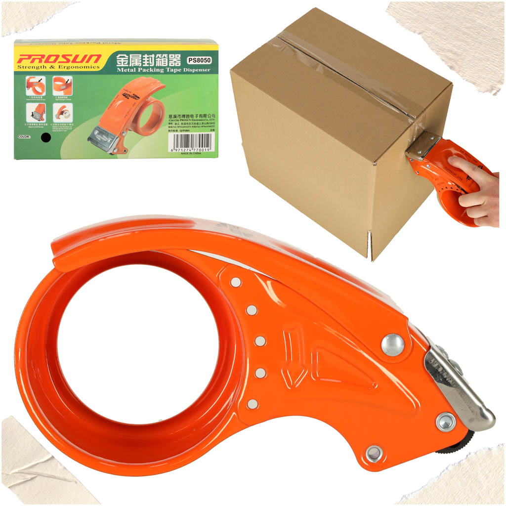 Praktyczny dyspenser do taśmy klejącej – niezbędne akcesorium na każdym magazynie. Dzięki niemu pakowanie paczek stanie się dużo łatwiejszym i szybszym zajęciem. Możliwość obsługi jedną ręką. Tworzywo: metal. Max. szerokość taśmy: 5cm. Wymiary: 16x9x6cm.