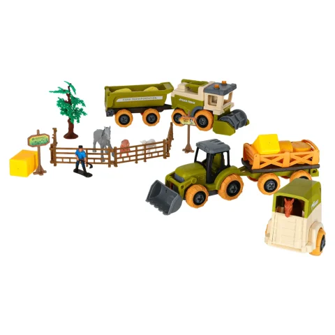 Fantastyczne gospodarstwo rolne z wieloma akcesoriami. Wszystkie pojazdy są rozkręcane za pomocą dołączonego zabawkowego śrubokręta. Zestaw wpłynie na rozwój motoryczny i rozwinie wyobraźnię dziecka. Zasilanie: 2 baterie AAA (brak w zestawie).