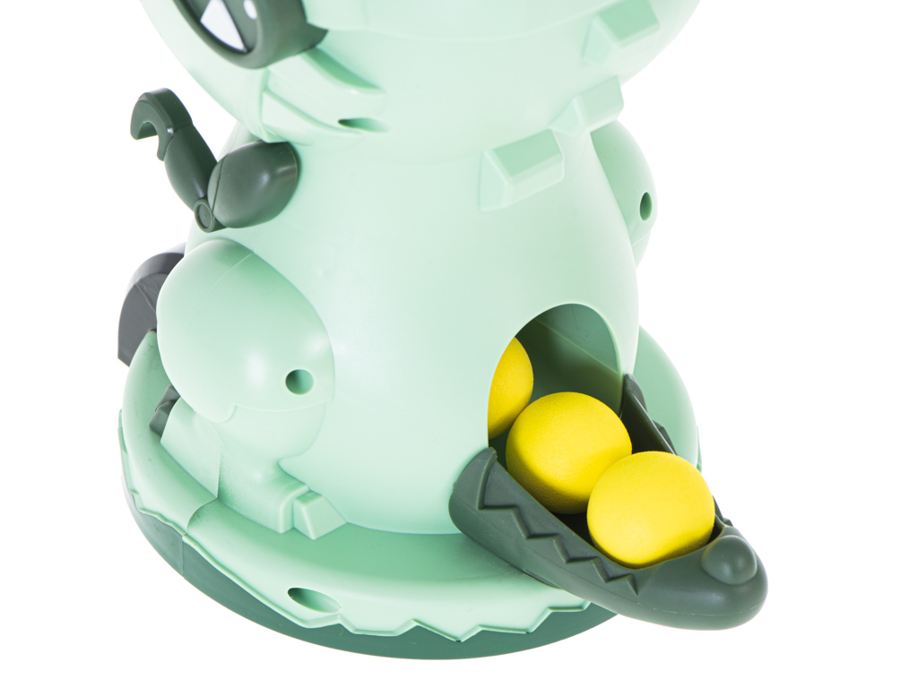 Wskaźnik LED, znajdujący się pod dinozaurem, liczy punkty za każde trafienie w paszczę potwora!