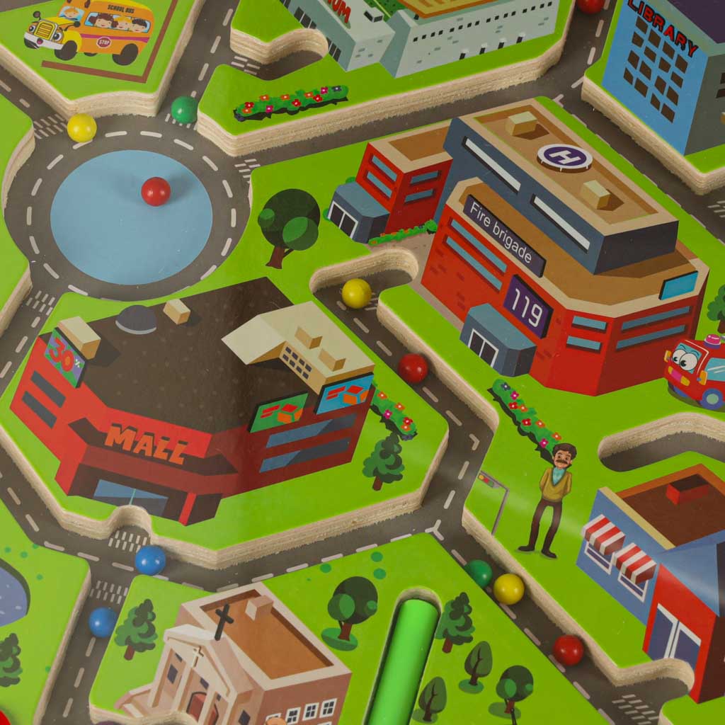 Gra labirynt magnetyczna planszowa drewniana do podróży duże miasto 2 graczy