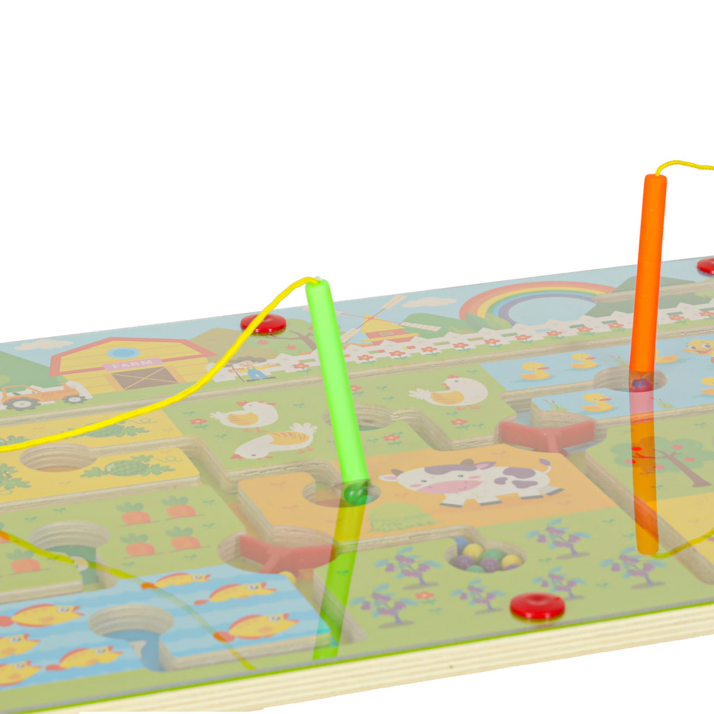Gra labirynt magnetyczna planszowa drewniana do podróży farma 2 graczy