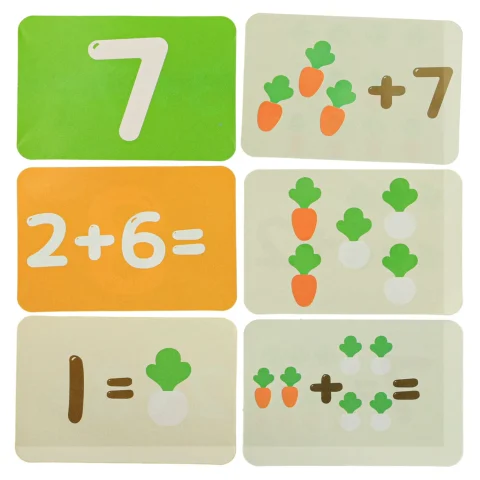 • 30 kart z cyferkami i marchewkami (wymiary: 9×12,5 cm)