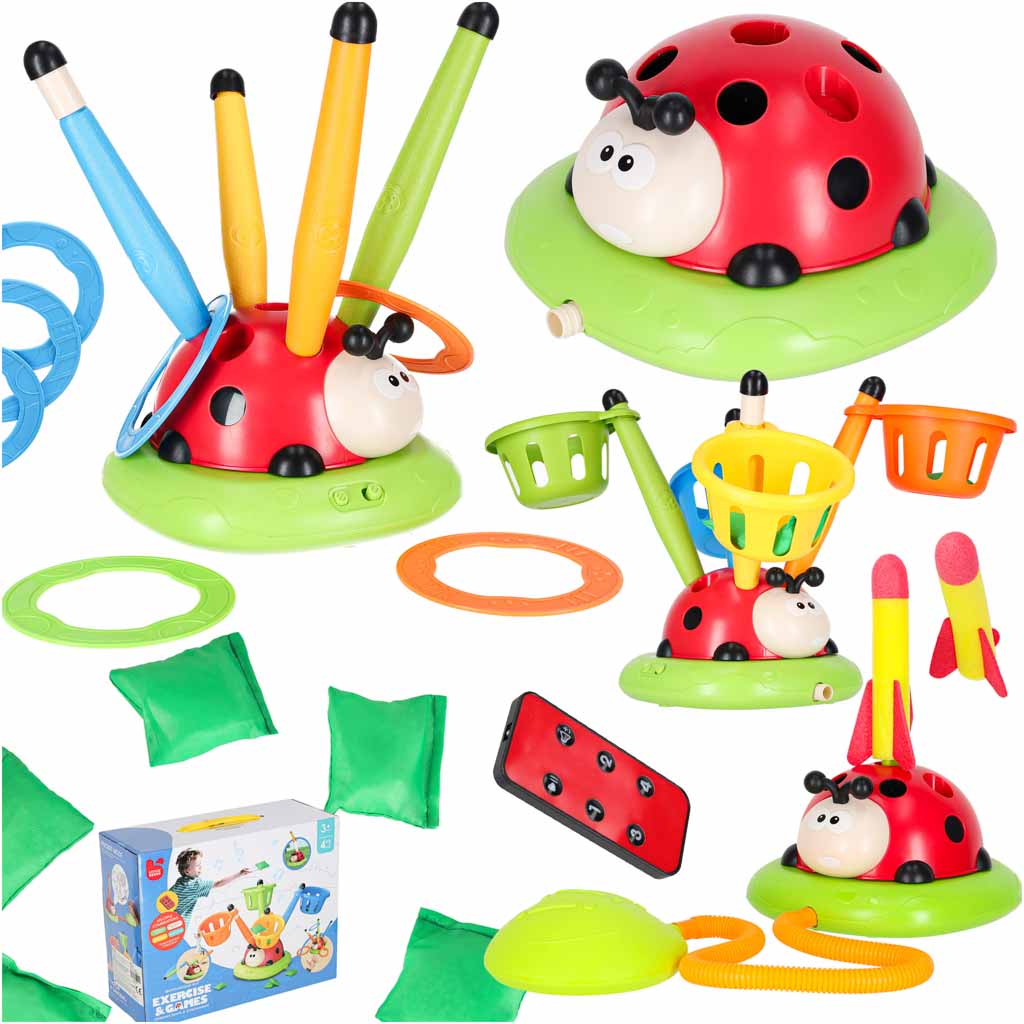WIELOFUNKCYJNA BIEDRONKA 4W1 – WYRZUTNIA RAKIET DLA DZIECI, RZUT DO CELU
