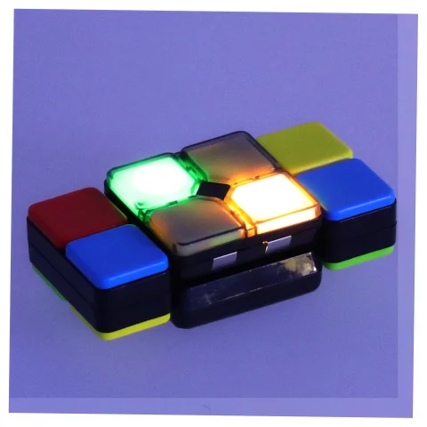 Elektroniczna kostka logiczna z ekranem LED wyposażona w cztery tryby gry. Urządzenie wspiera trening logicznego myślenia, refleksu i koordynacji. Kompaktowa konstrukcja sprzyja ćwiczeniu małej motoryki oraz szybkości reakcji podczas rozgrywki.