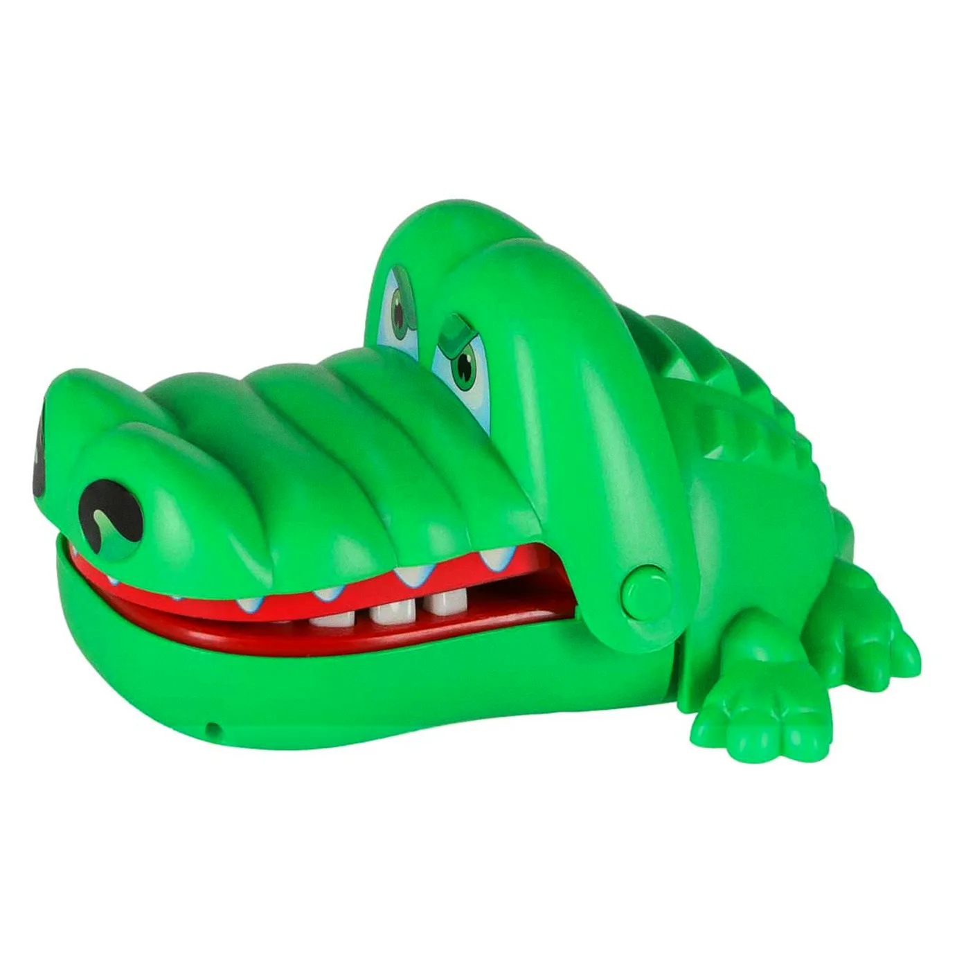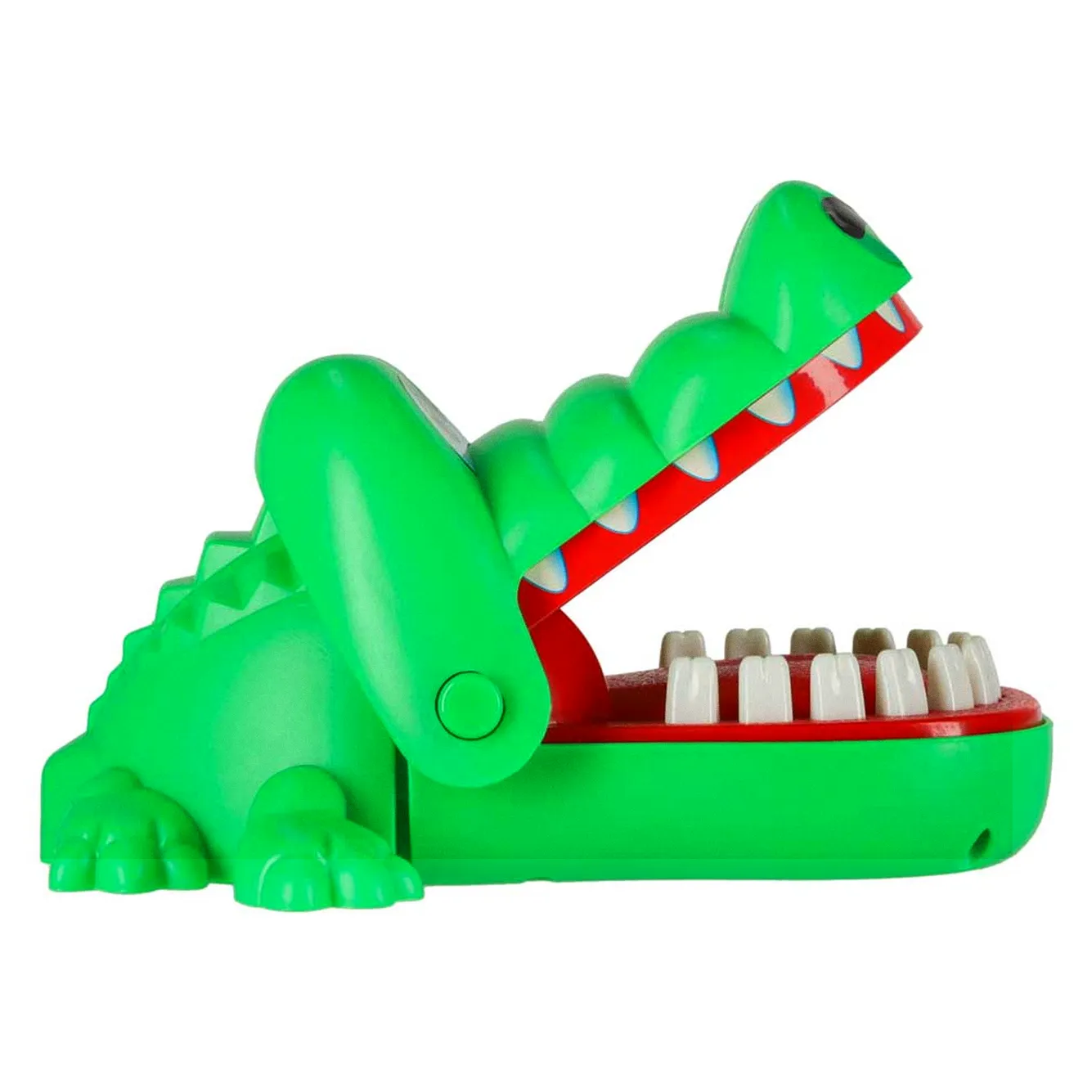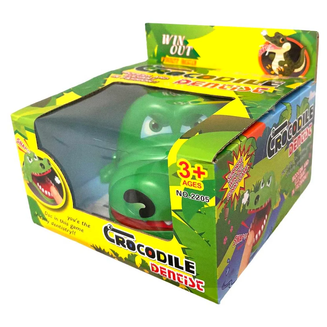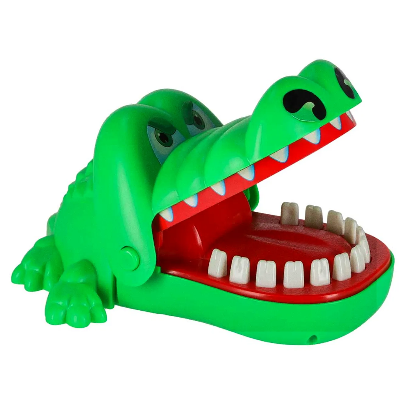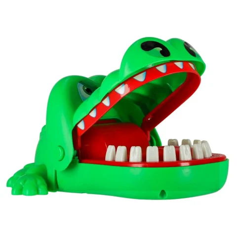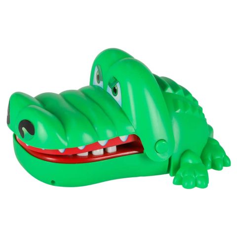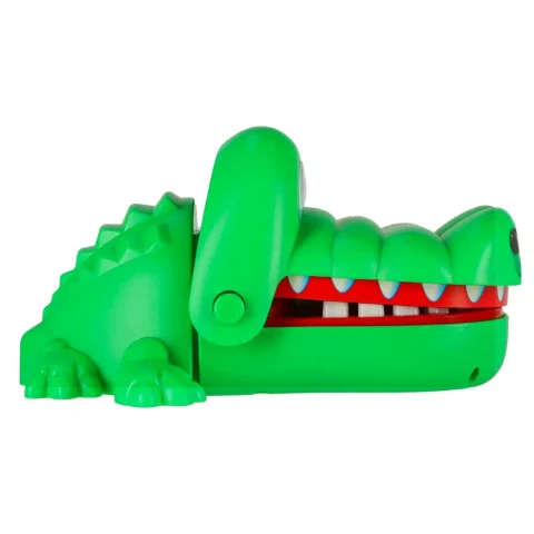 Gra zręcznościowa krokodyl u dentysty. Gra polega na naciskaniu zębów krokodyla – jeden z nich jest chory! Jeśli trafisz na bolący ząb – krokodyl zamknie szczękę z trzaskiem! Ciekawe i proste zasady gry. Wymiary: 12,5×10,5x6cm.