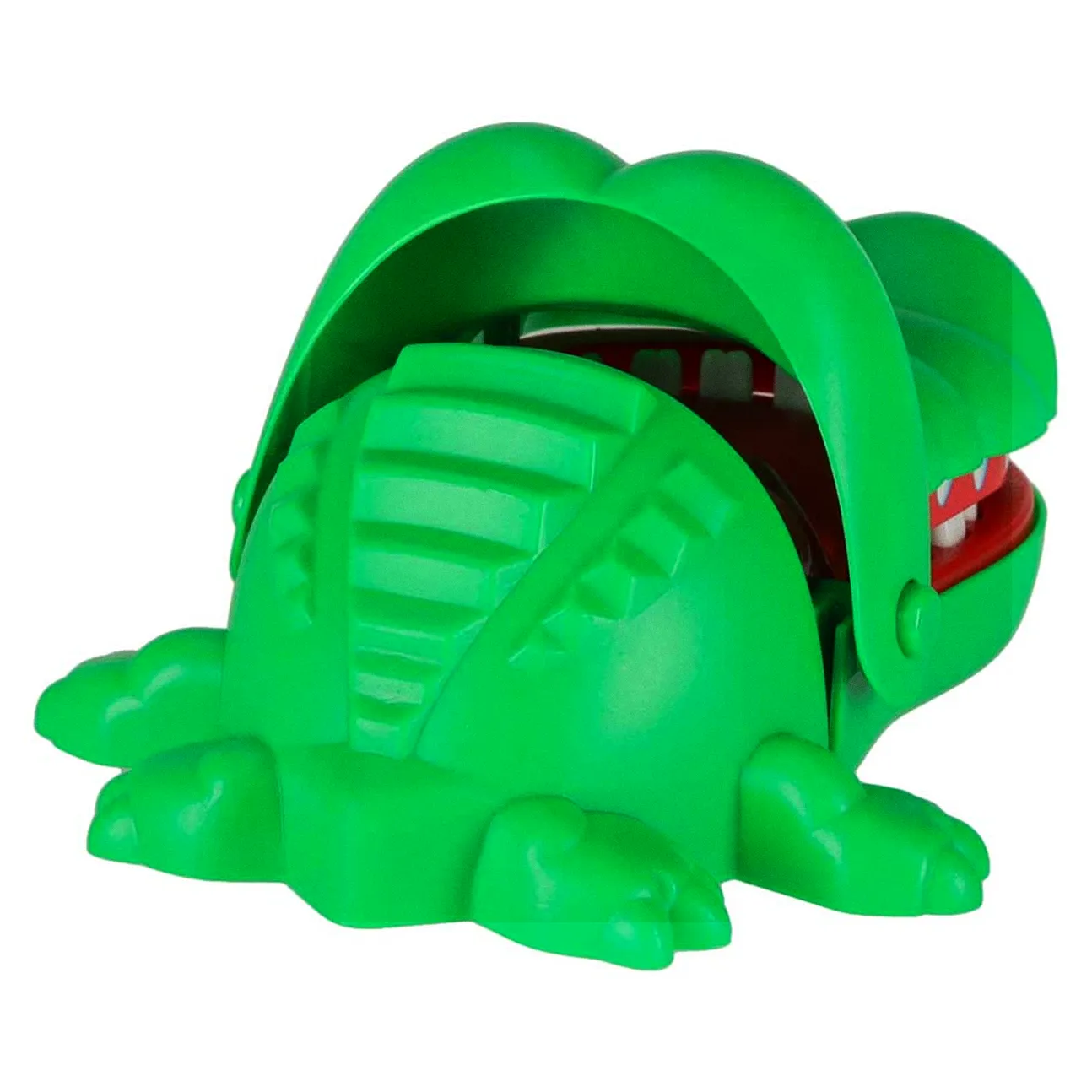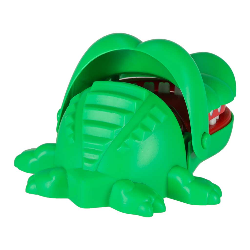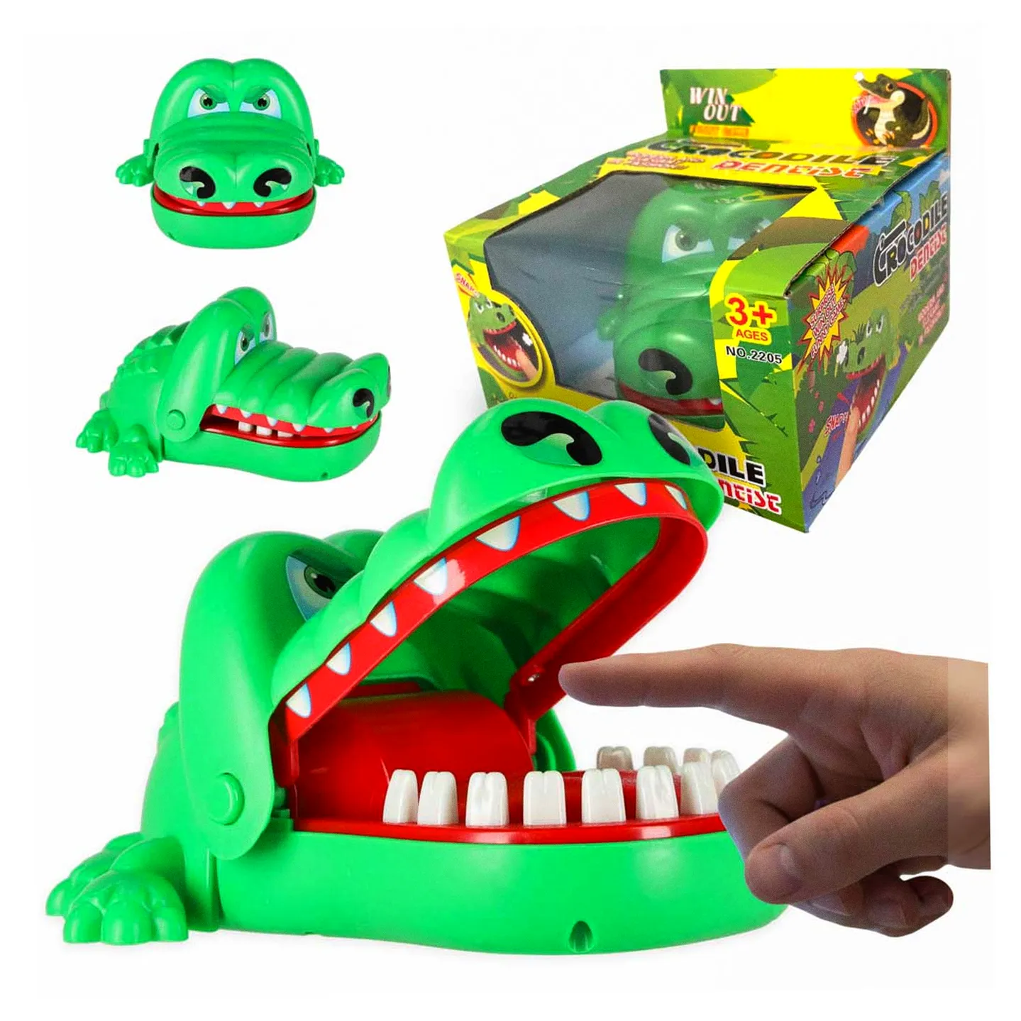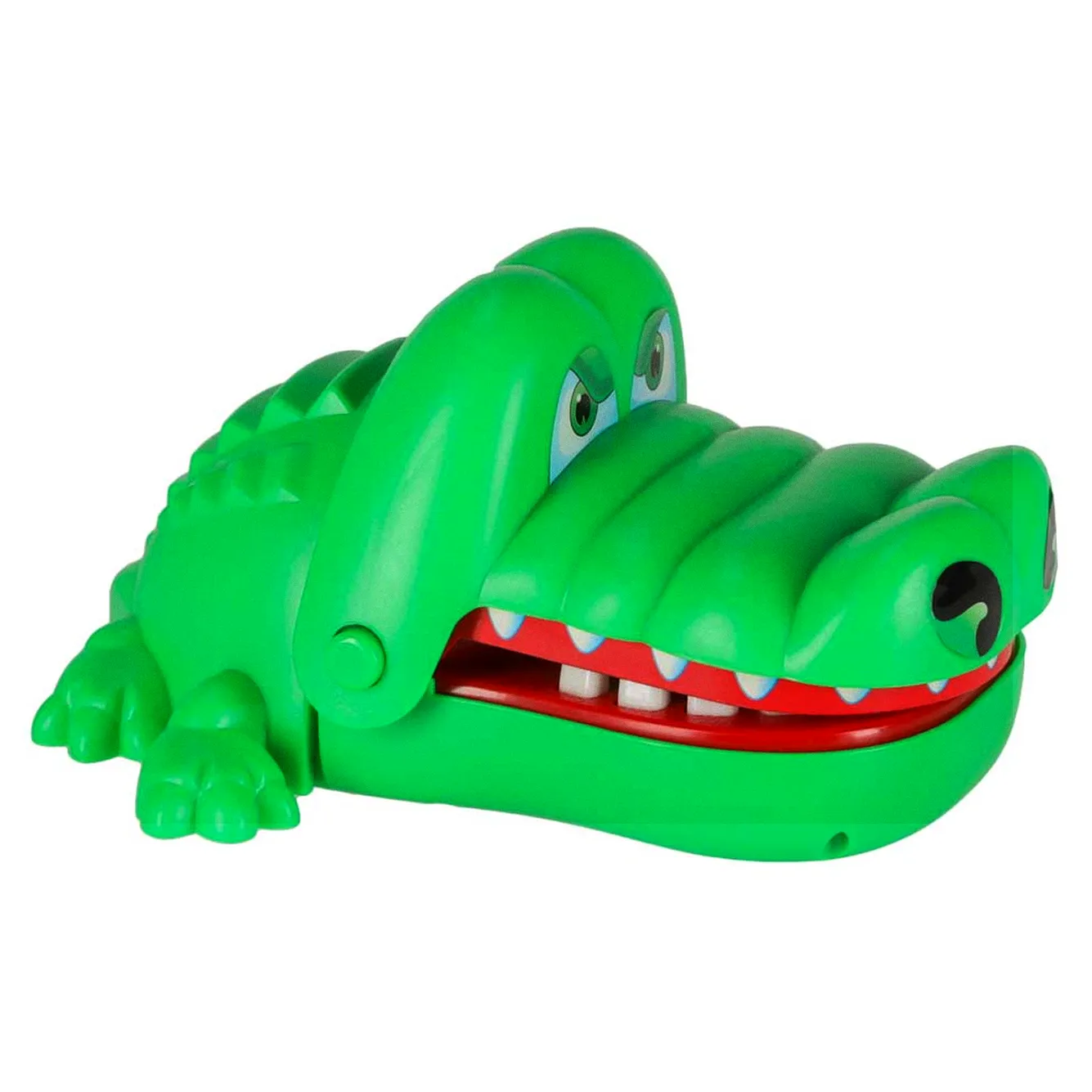 Gra zręcznościowa krokodyl u dentysty. Gra polega na naciskaniu zębów krokodyla – jeden z nich jest chory! Jeśli trafisz na bolący ząb – krokodyl zamknie szczękę z trzaskiem! Ciekawe i proste zasady gry. Wymiary: 12,5×10,5x6cm.