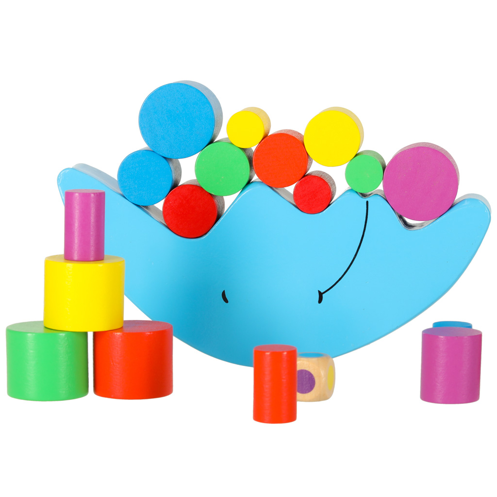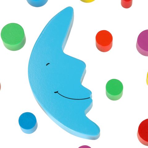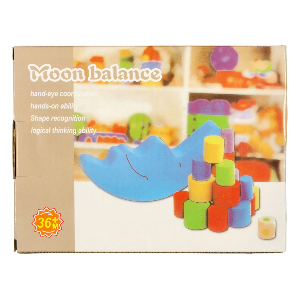 Wieloelementowa gra zręcznościowa-balansujący księżyc.Rewelacyjny sposób na spędzenie czasu z dzieckiem. Wykonana z drewna zabawka zawiera: księżyc, kostkę do gry,18 kolorowych klocków. Żywe kolory zachęcają do zabawy. Wymiary księżyca: 17cmx7cm.