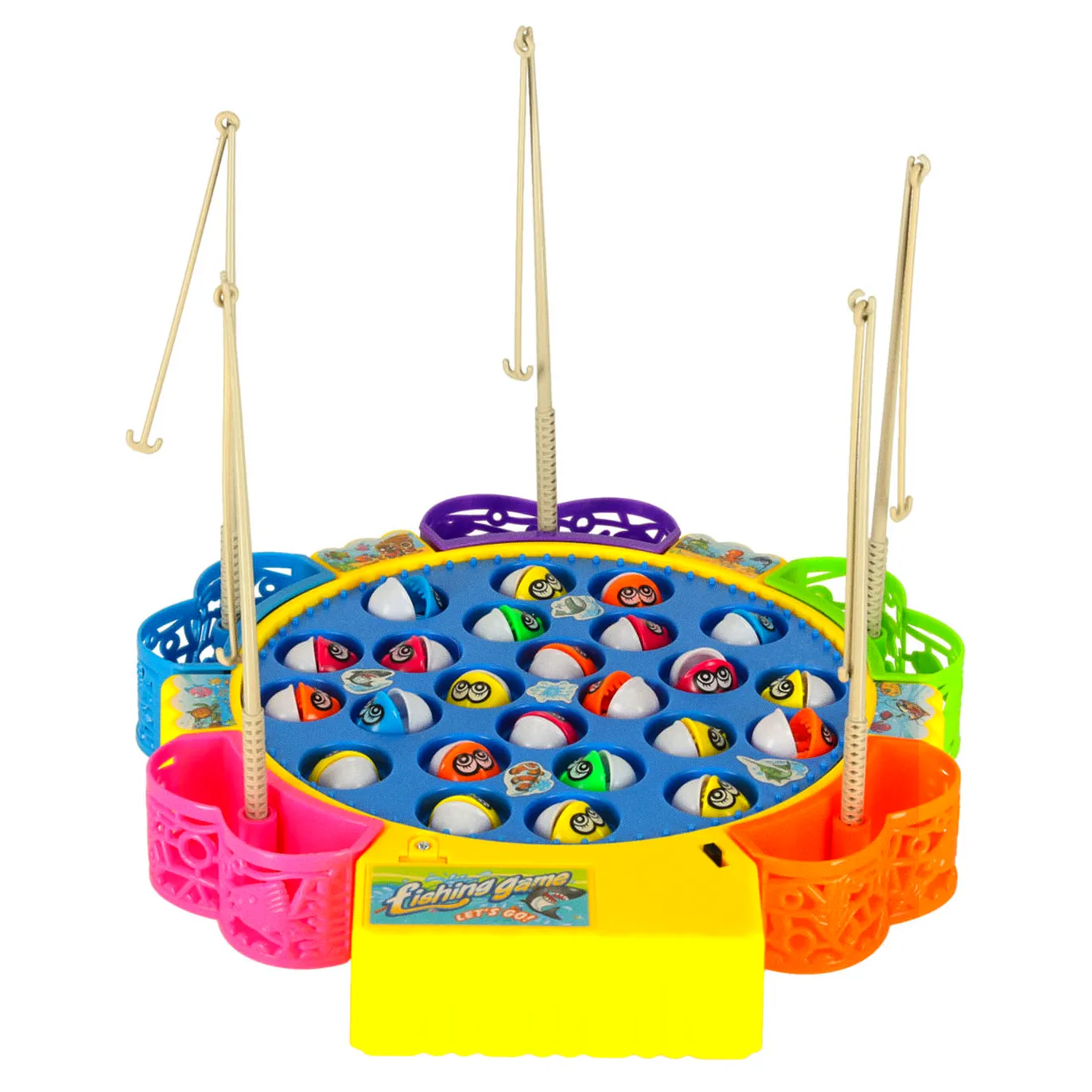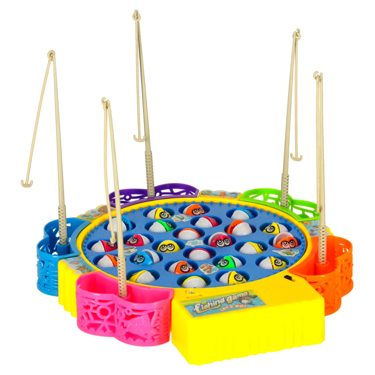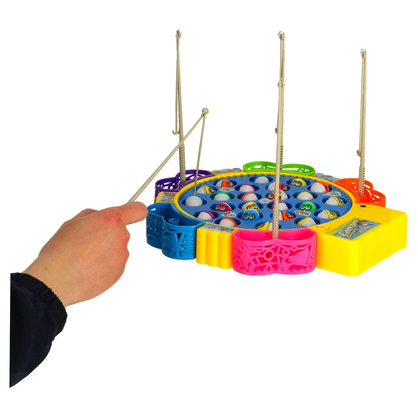 Fantastyczna gra dla całej rodziny polegająca na łowieniu rybek. Zasilanie: 2 baterie AA 1,5 V (brak w zestawie), Podstawy: 25,5cm x 23,5cm x 3,5cm, Rybki: 3cm x 2cm