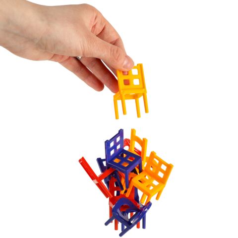 Rewelacyjna gra logiczna dla całej rodziny. Zadaniem graczy jest ułożenie z krzeseł jak najwyższej wieży. Przegrywa osoba, która spowoduje, że wieża się rozsypie. Tworzywo: plastik, Wymiary krzesełka: 5×2,5cm