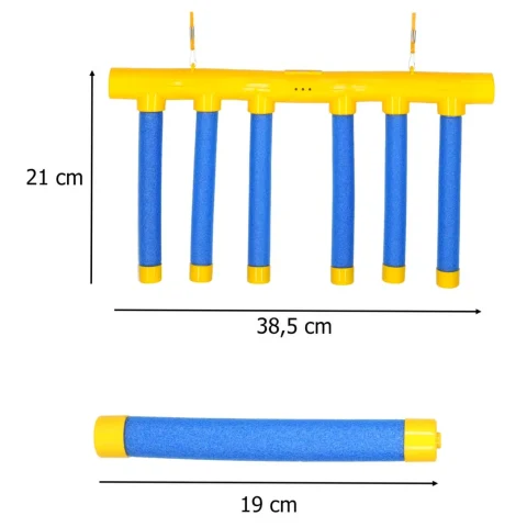 - Wymiary całkowite zabawki: 38,5 cm x 21 cm (gniazdo + zawieszone pałeczki)
