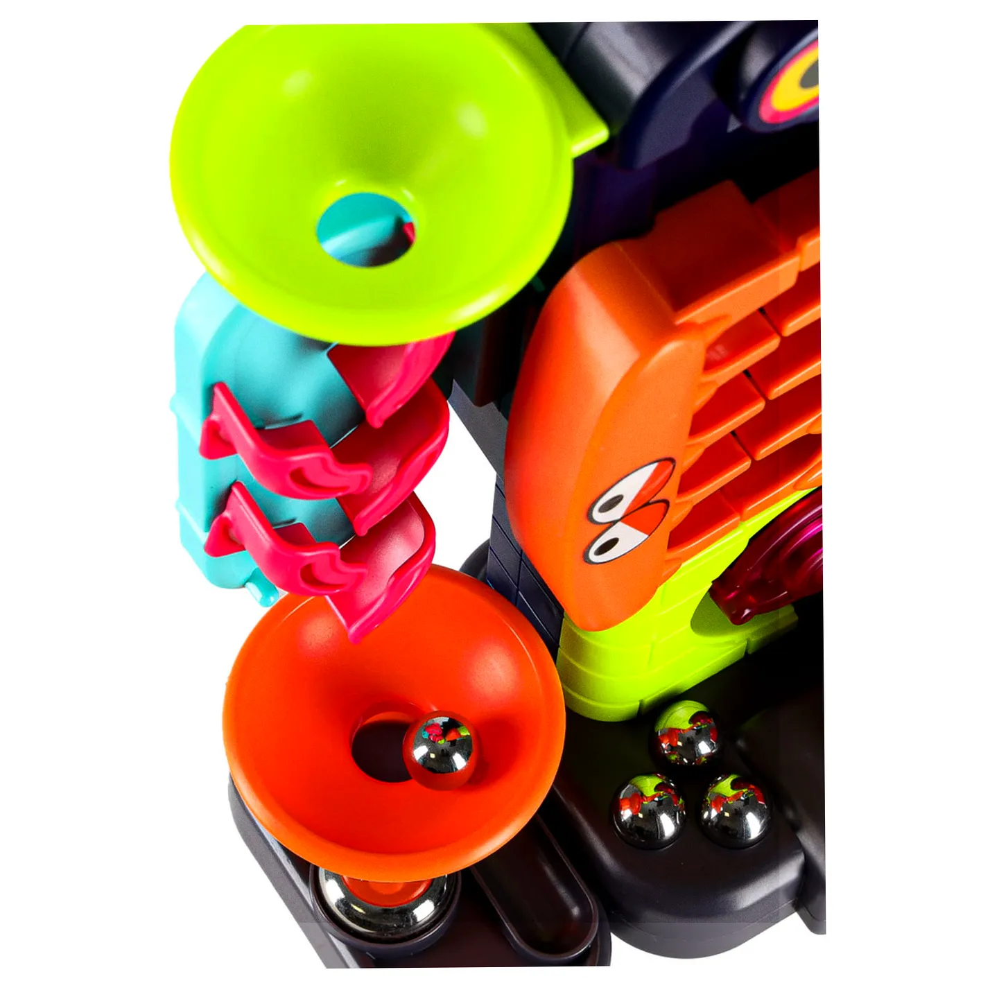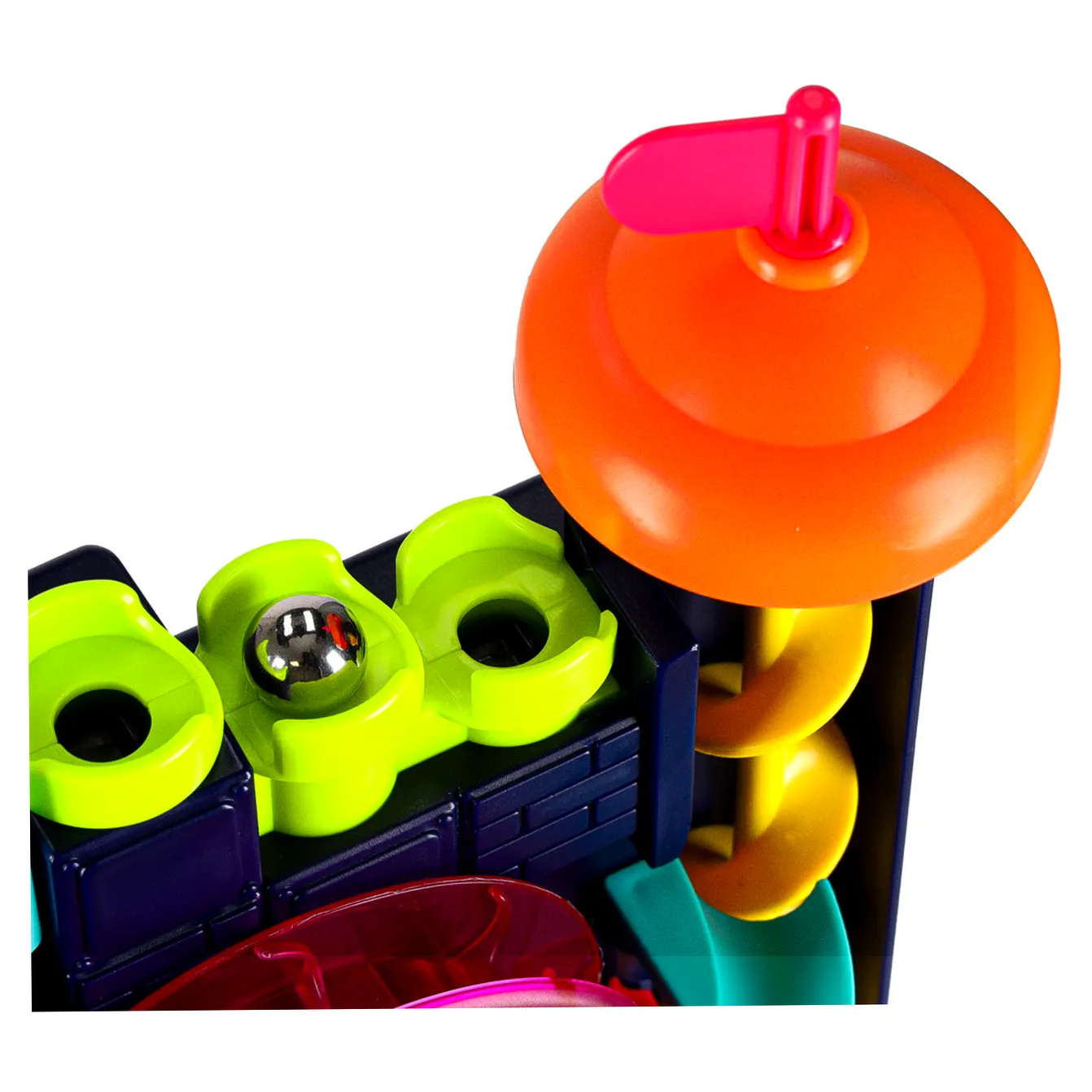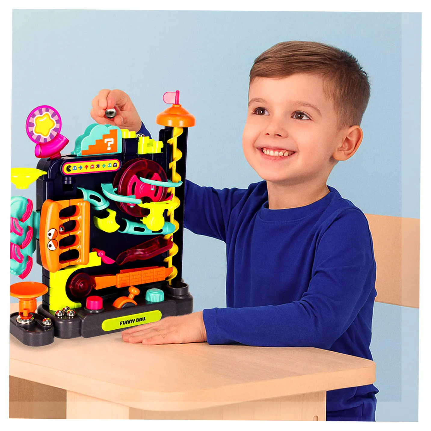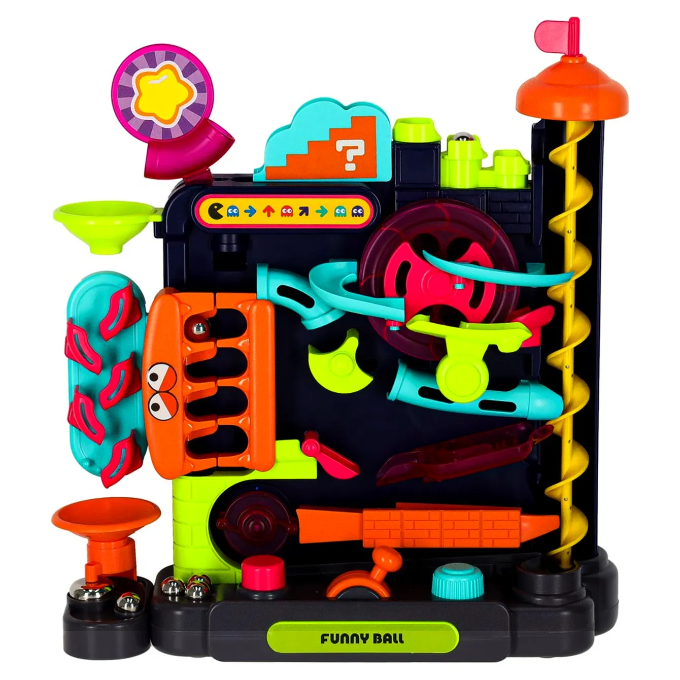 Kulkowy tor przeszkód STEM rozwijający logiczne myślenie, zręczność i motorykę. Poruszaj elementami na planszy za pomocą dźwigni i pokręteł, by kulki potoczyły się do celu. Wymiary zabawki: 32 cm x 34 cm x 10 cm