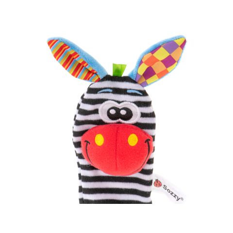 Skarpetki zapewniające odpowiednią temperaturę, dodatkowo dźwięk wydawany przez grzechotkę intryguje Maluszka, pobudzając do unoszenia nóg i uczący zasady „przyczyna- skutek”.