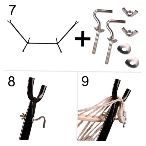 • Mocny stelaż hamaka zapewnia stabilność i dużą wytrzymałość