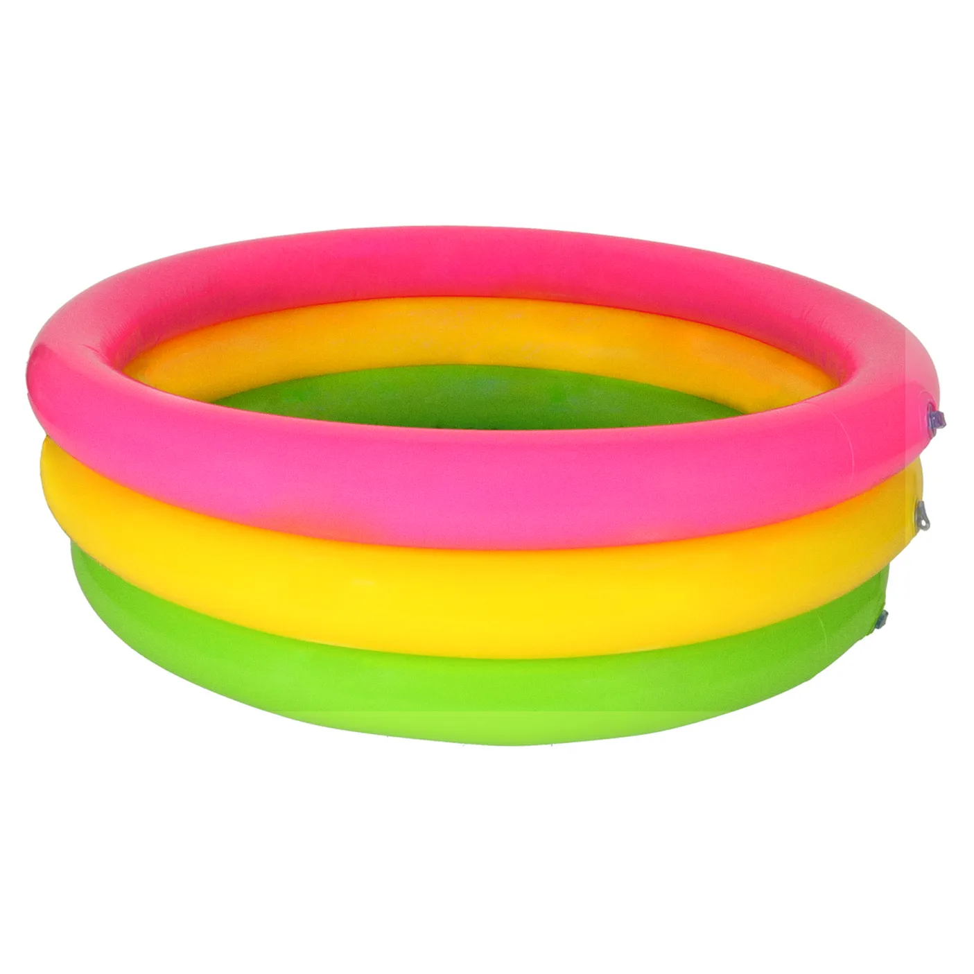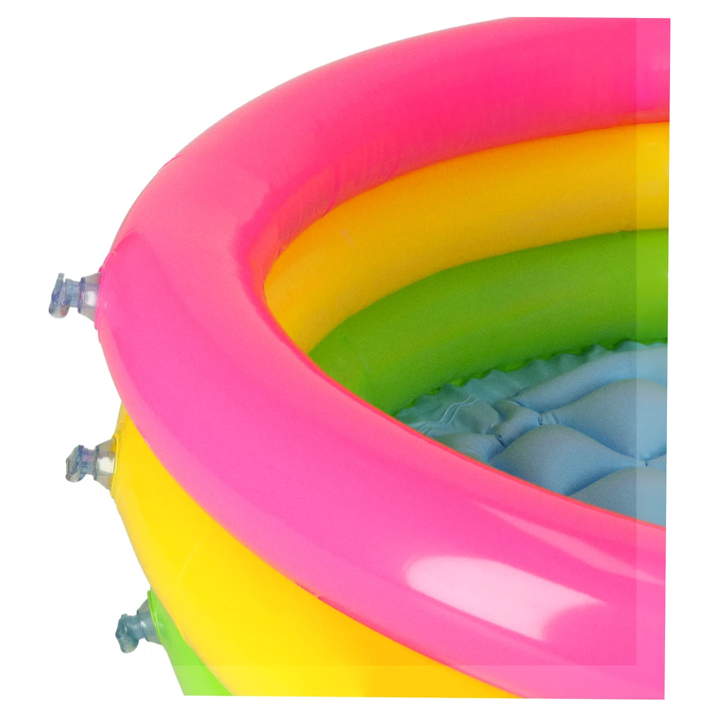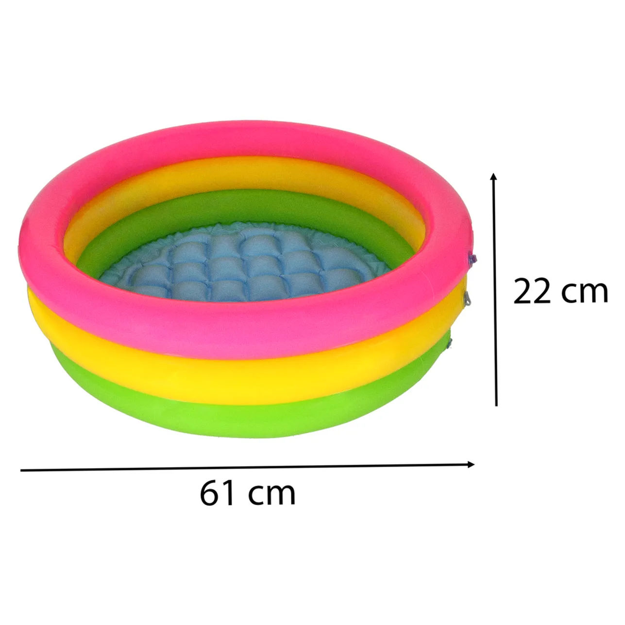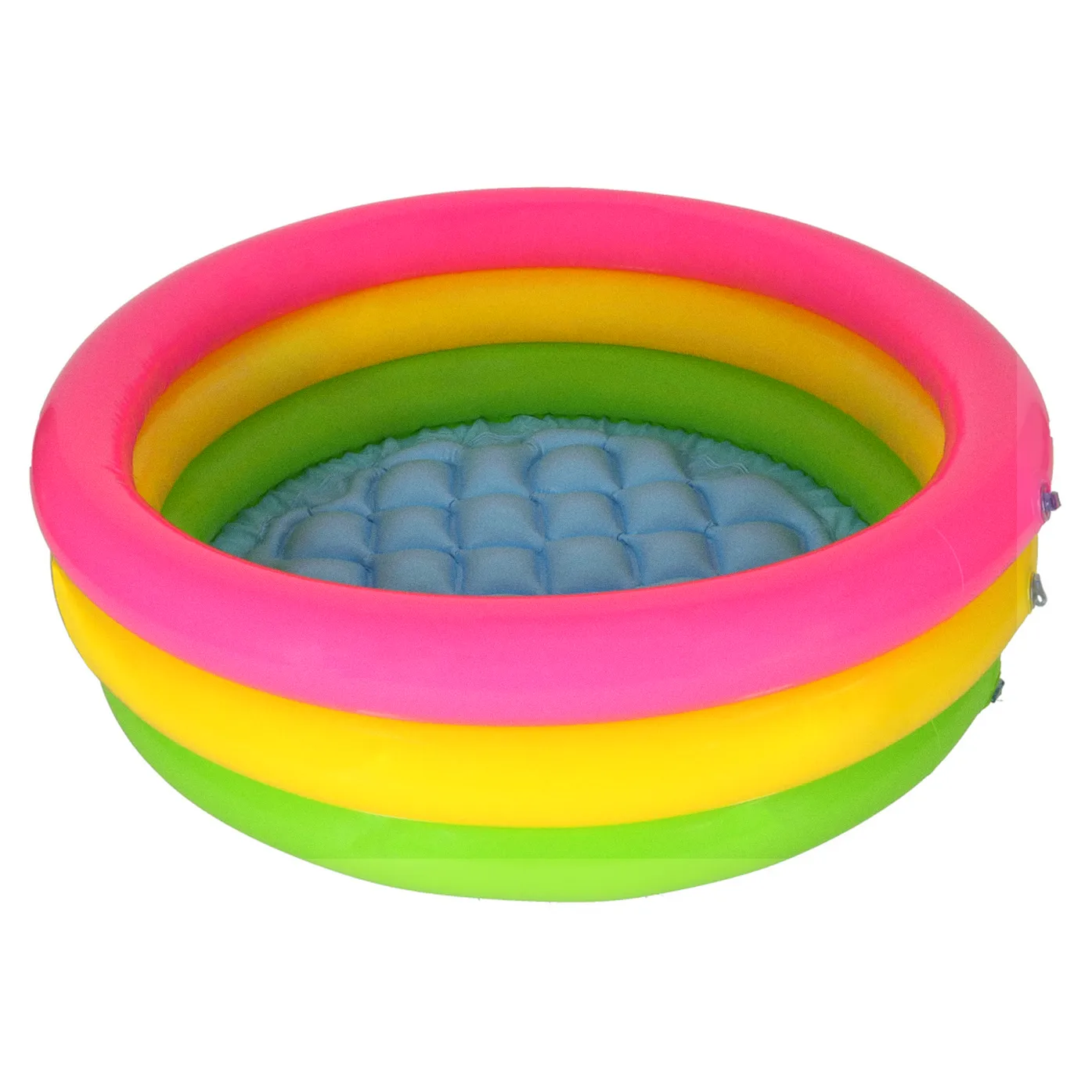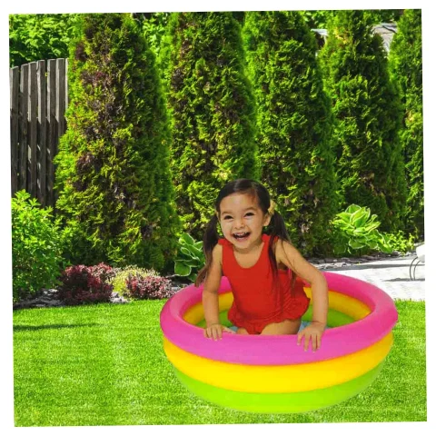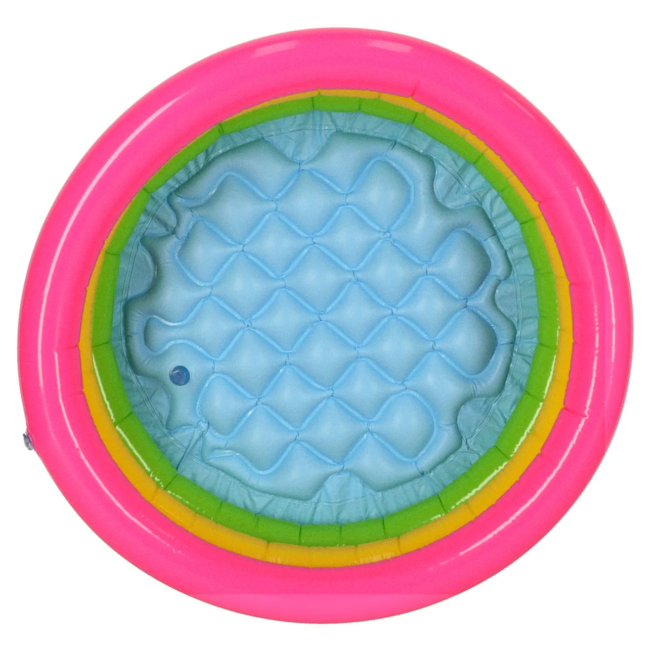Basen składa się z trzech oddzielnie dmuchanych okręgów w jaskrawych barwach, które przyciągną uwagę malucha. Posiada również miękkie, dmuchane dno, które izoluje od zimnego podłoża i zapewnia komfort.