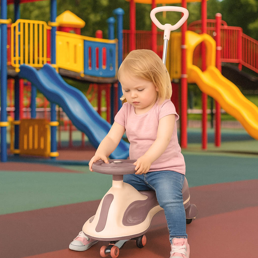 Jeździk grawitacyjny dla dzieci 3–6 lat. Udźwig 100 kg. Tworzywo sztuczne. LED: 3×AA (brak w zestawie). Koła z efektem świetlnym. Różowy/fioletowy. Wys: kierownicy 40 cm, siedzisko 24 cm, rączka 84 cm.
