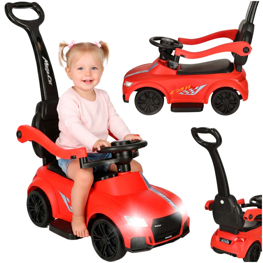 JEŹDZIK PCHACZ SAMOCHÓD Z DŹWIĘKIEM I ŚWIATŁAMI CZERWONY