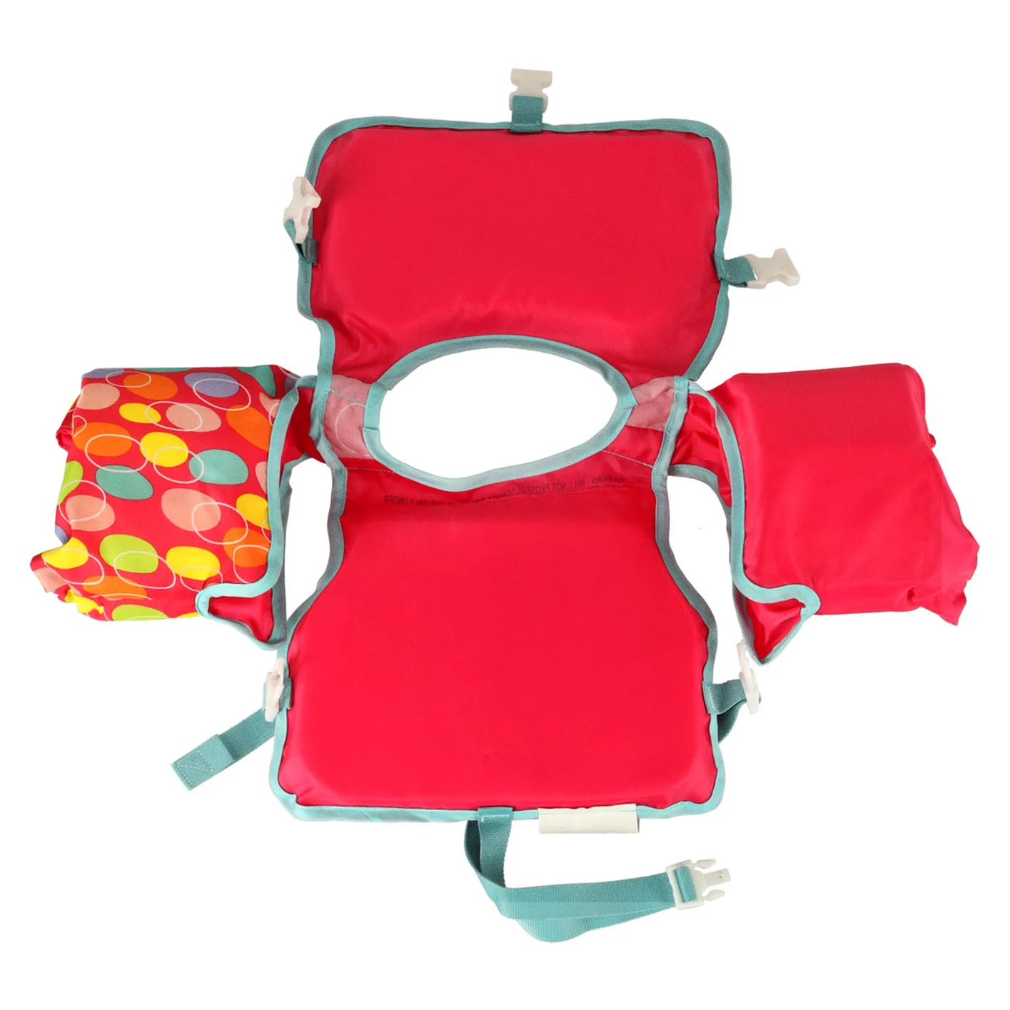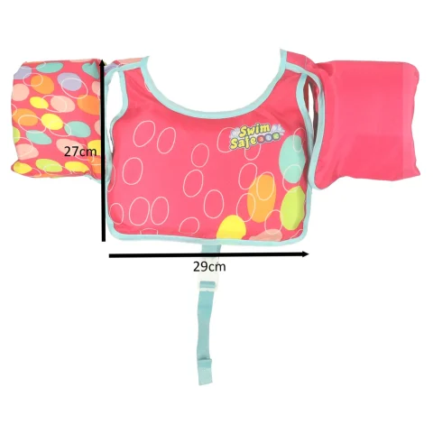 Różowa kamizelka z rękawkami do pływania dla dzieci. Piankowe wypełnienie zapewnia doskonałą wyporność. Regulowane zapięcie umożliwia dostosowanie kamizelki do wzrostu dziecka. Maksymalne obciążenie: 19-30 kg. Wymiary: 29 cm x 27 cm.