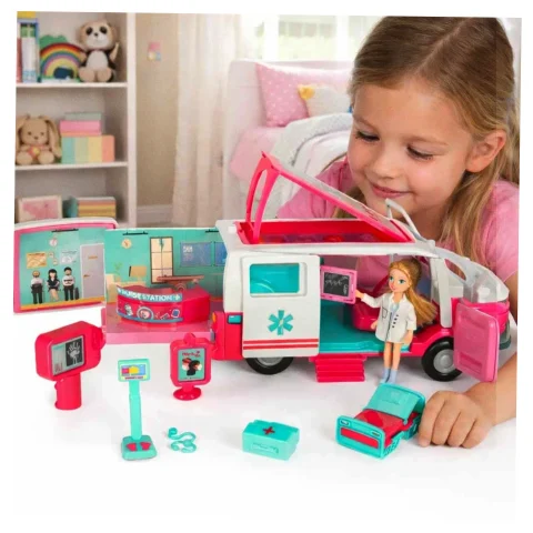 Ambulans 2w1 z lalką-lekarką to przystępny sposób na zaprezentowanie dziecku jak wygląda praca lekarza. Razem z lalką-lekarką można odgrywać scenki ratunkowe, wizyty w przychodni oraz wizyty domowe. Lalka ma stetoskop, strzykawkę i wagę – różnorodne akcesoria pomogą wytłumaczyć dziecku dlaczego badania profilaktyczne są ważne. Poprzez zabawę dziecko może zobaczyć jak wygląda bilans zdrowia czy pobieranie krwi do badań.