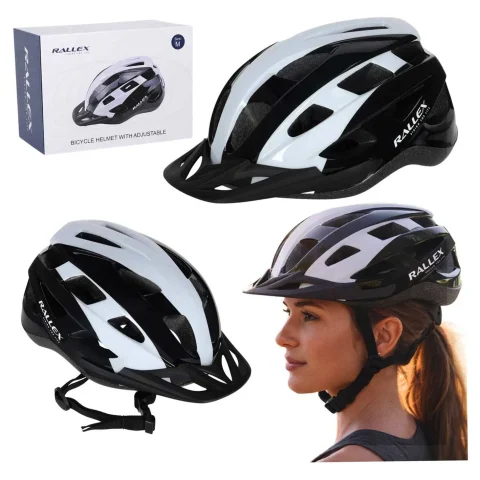 Kask rowerowy na rower RALLEX damski męski regulowany czarno-biały M 54-58cm