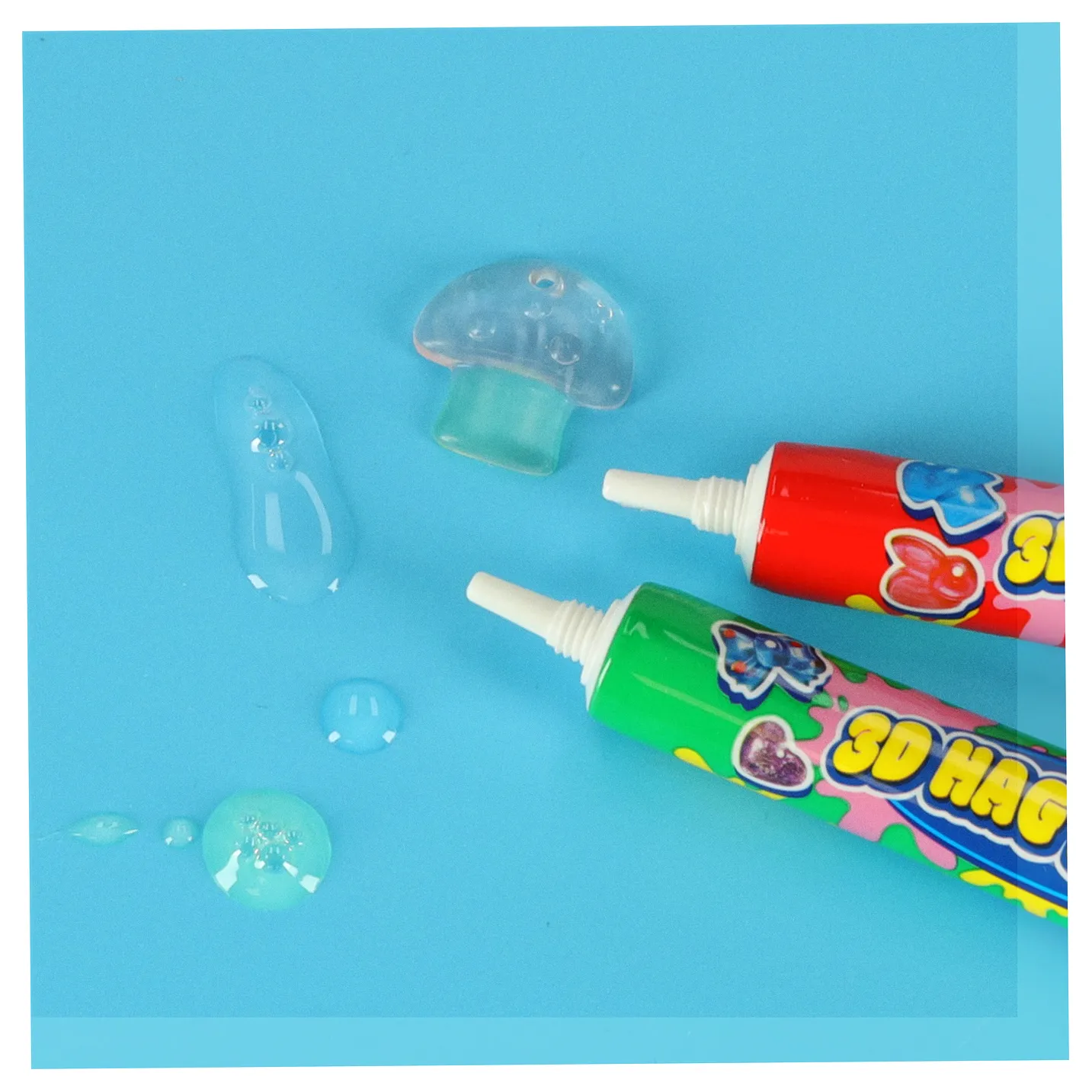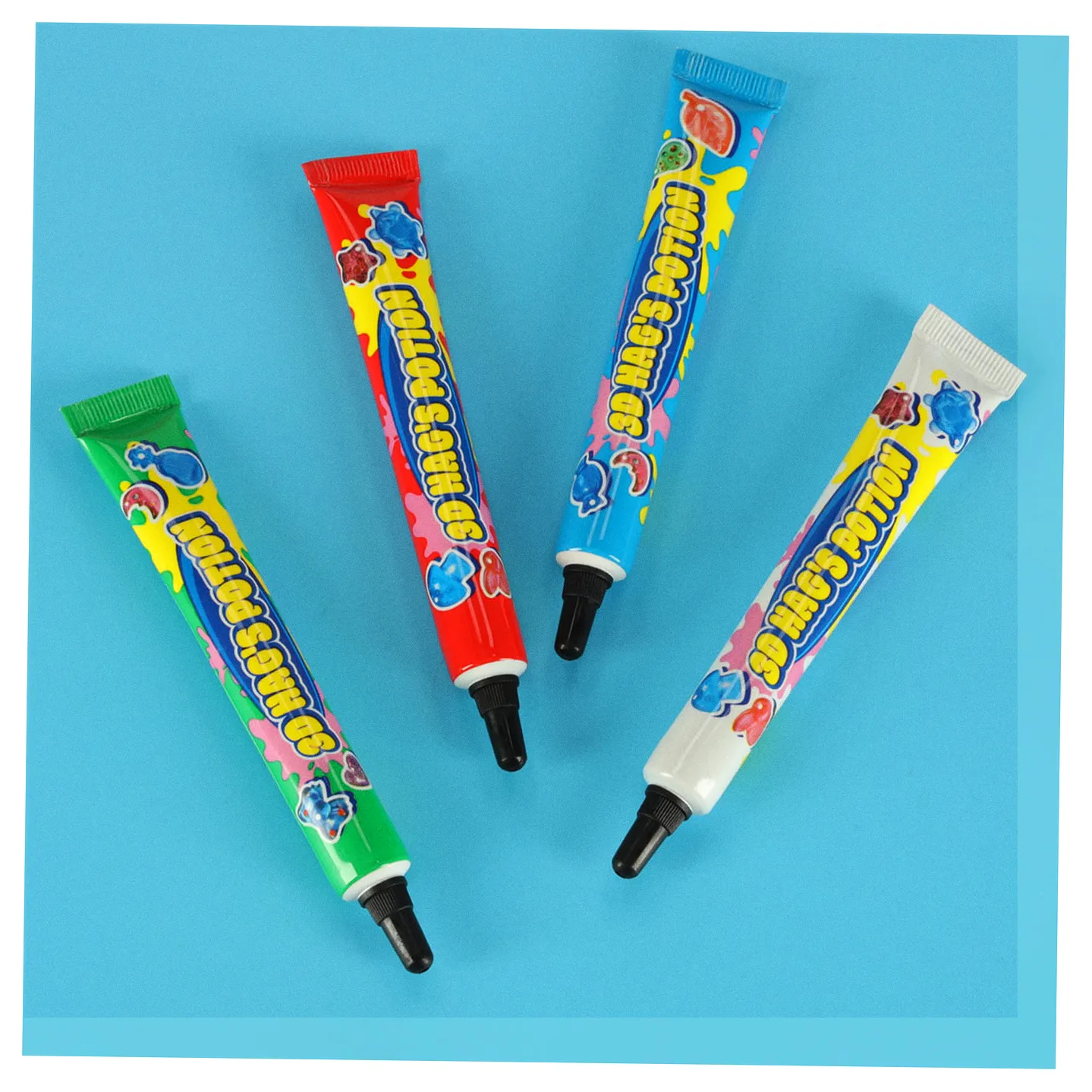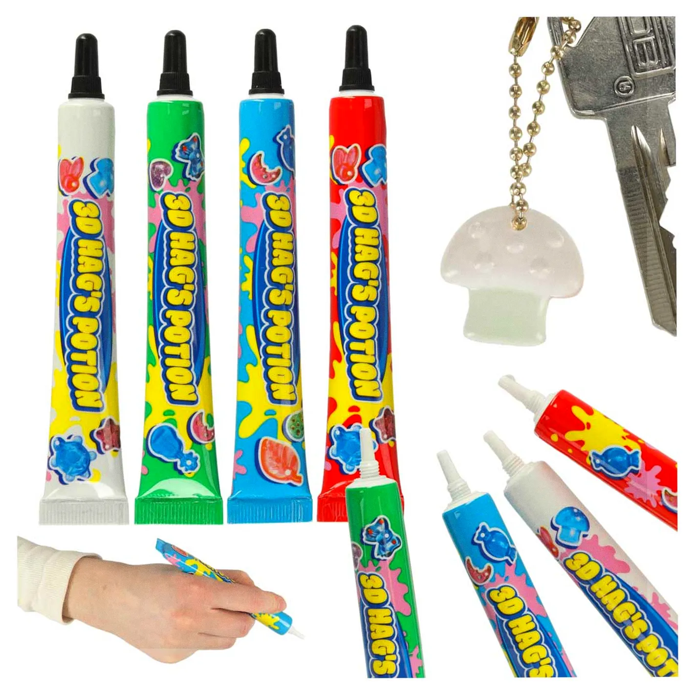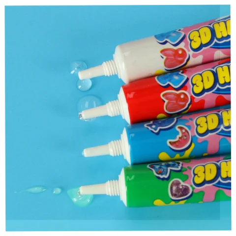 Zestaw kleju do „Magicznego Pudełka” to doskonałe uzupełnienie kreatywnego zestawu do tworzenia biżuterii utwardzanej światłem UV. W komplecie znajdują się cztery tubki kleju w kolorach: czerwonym, białym, niebieskim i zielonym, każda o pojemności 20 g.