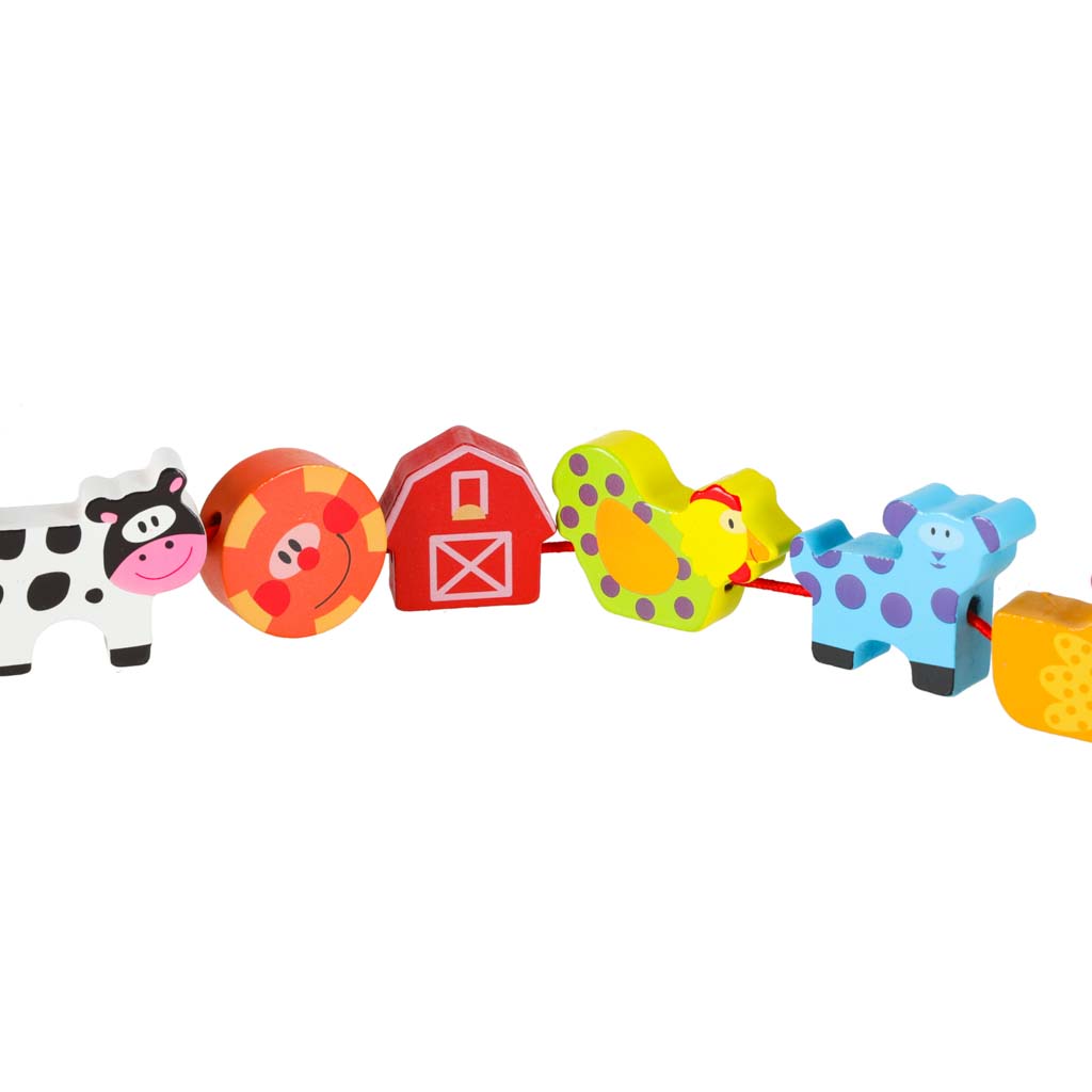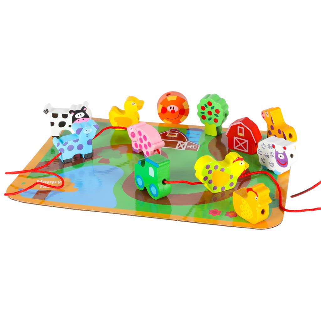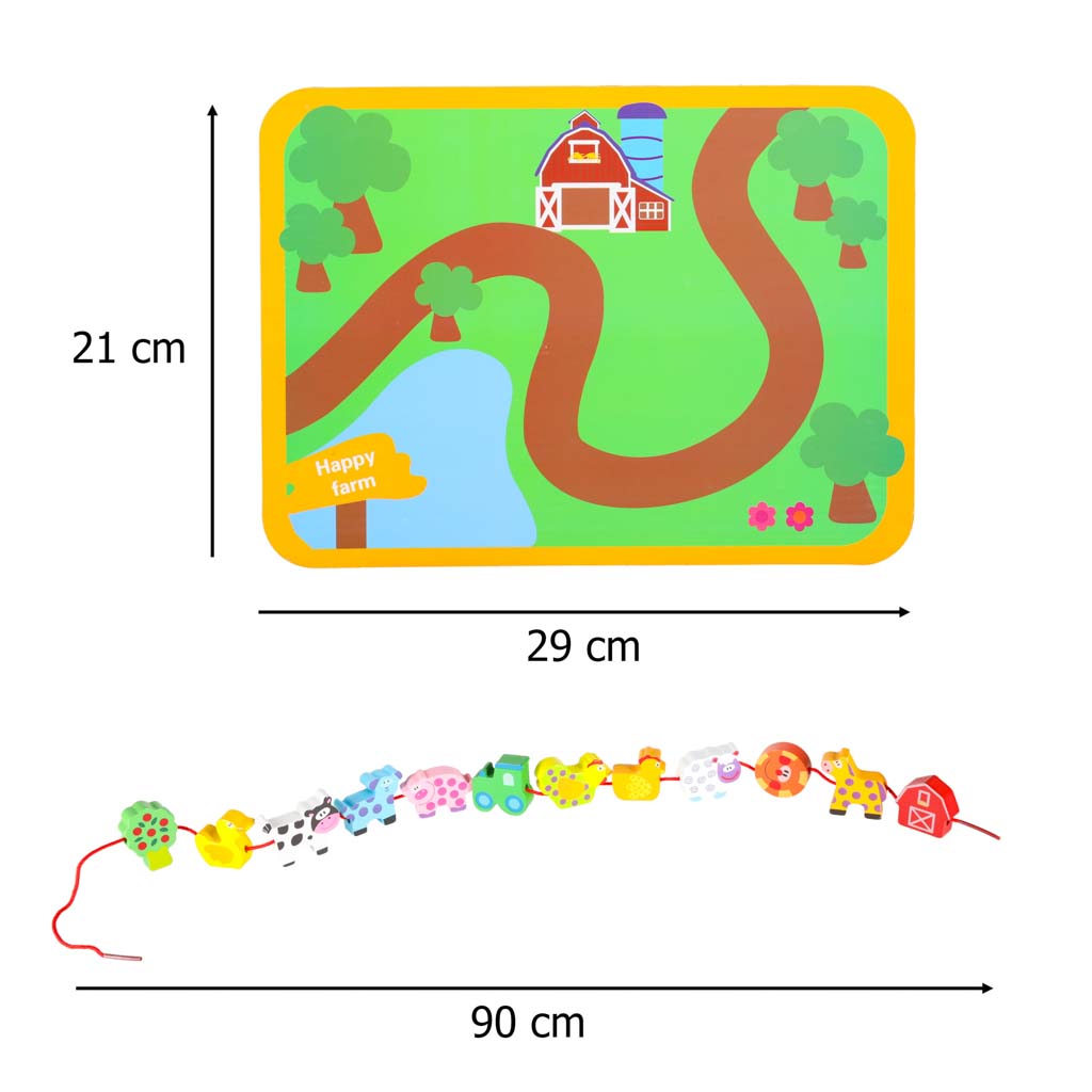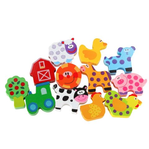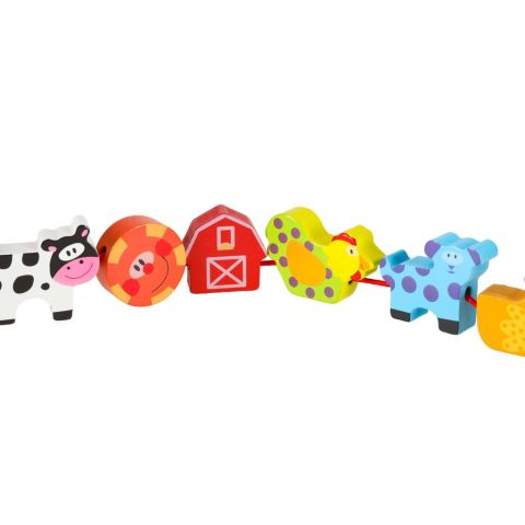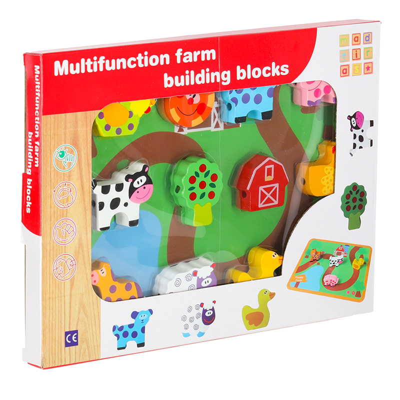 Klocki drewniane do nawlekania tablica plansza farma zwierzęta