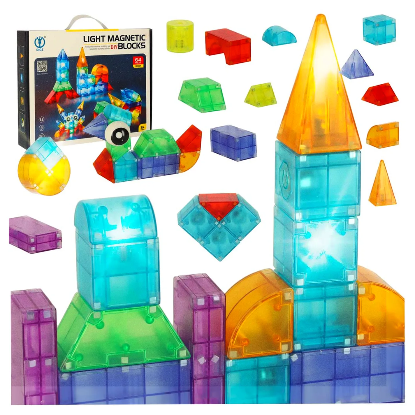 KLOCKI MAGNETYCZNE ŚWIECĄCE 64 EL.