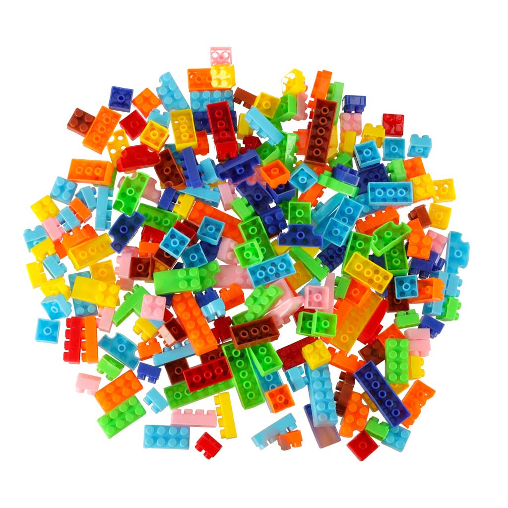 Zestaw zawiera 240 klocków w różnych kształtach i rozmiarach.