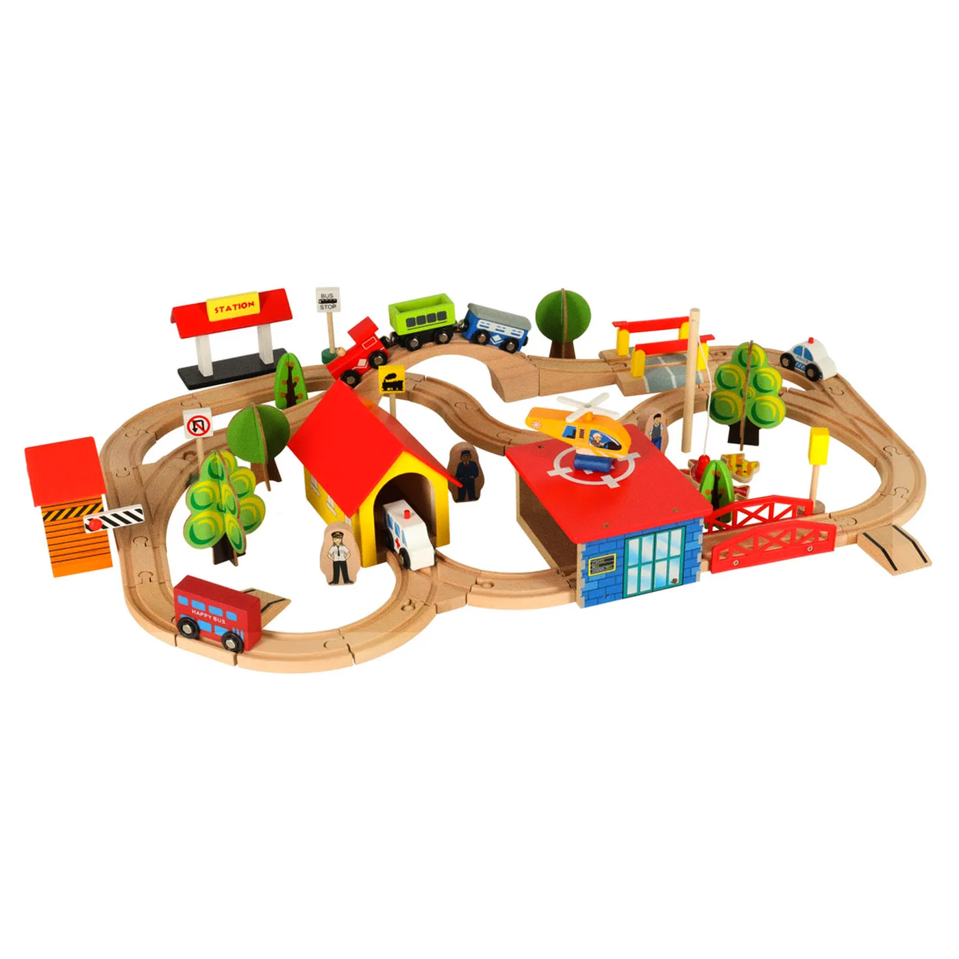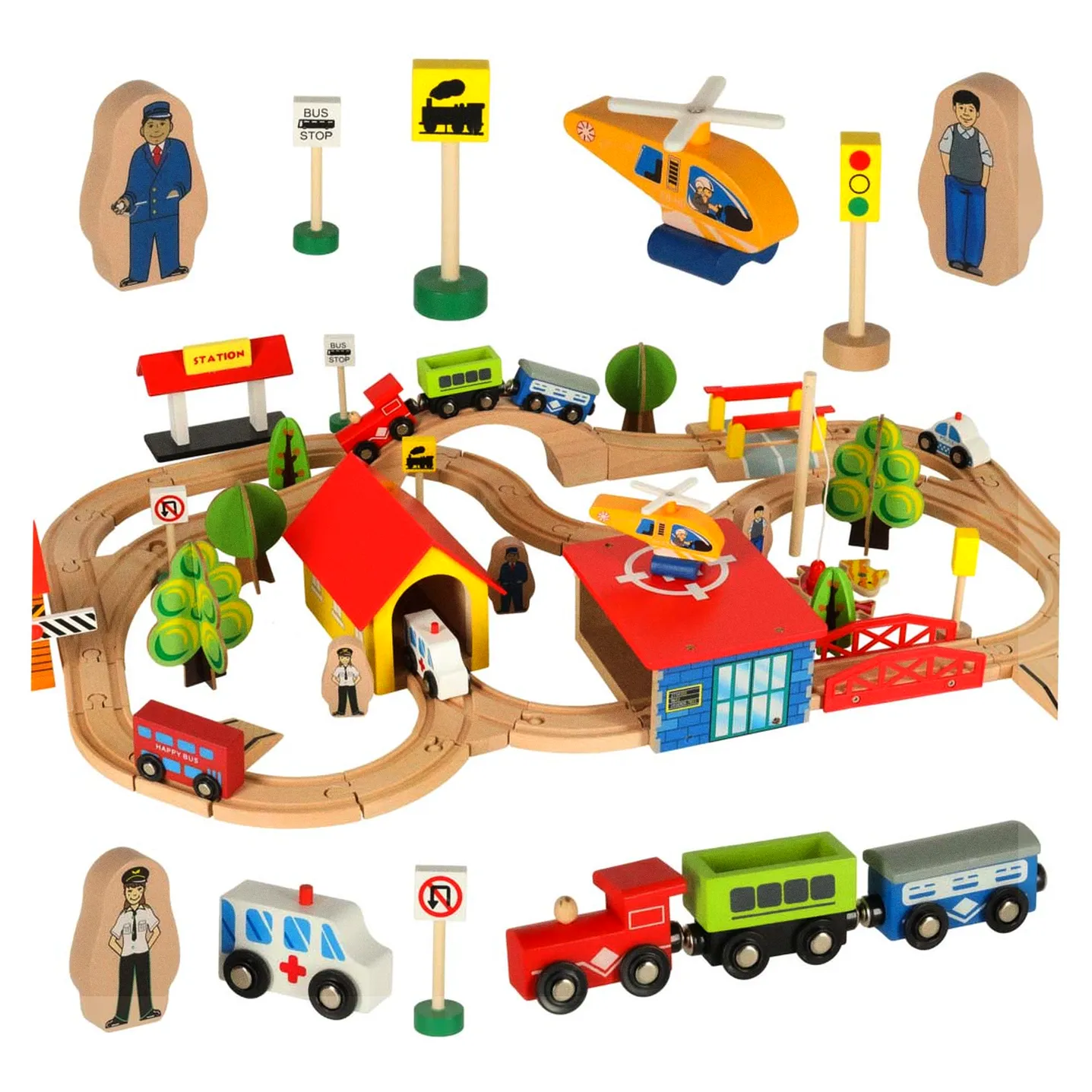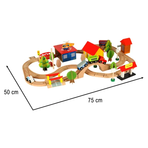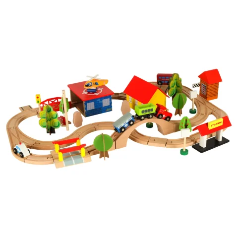 Kolejka drewniana pociąg lokomotywa miasto 69 elementów