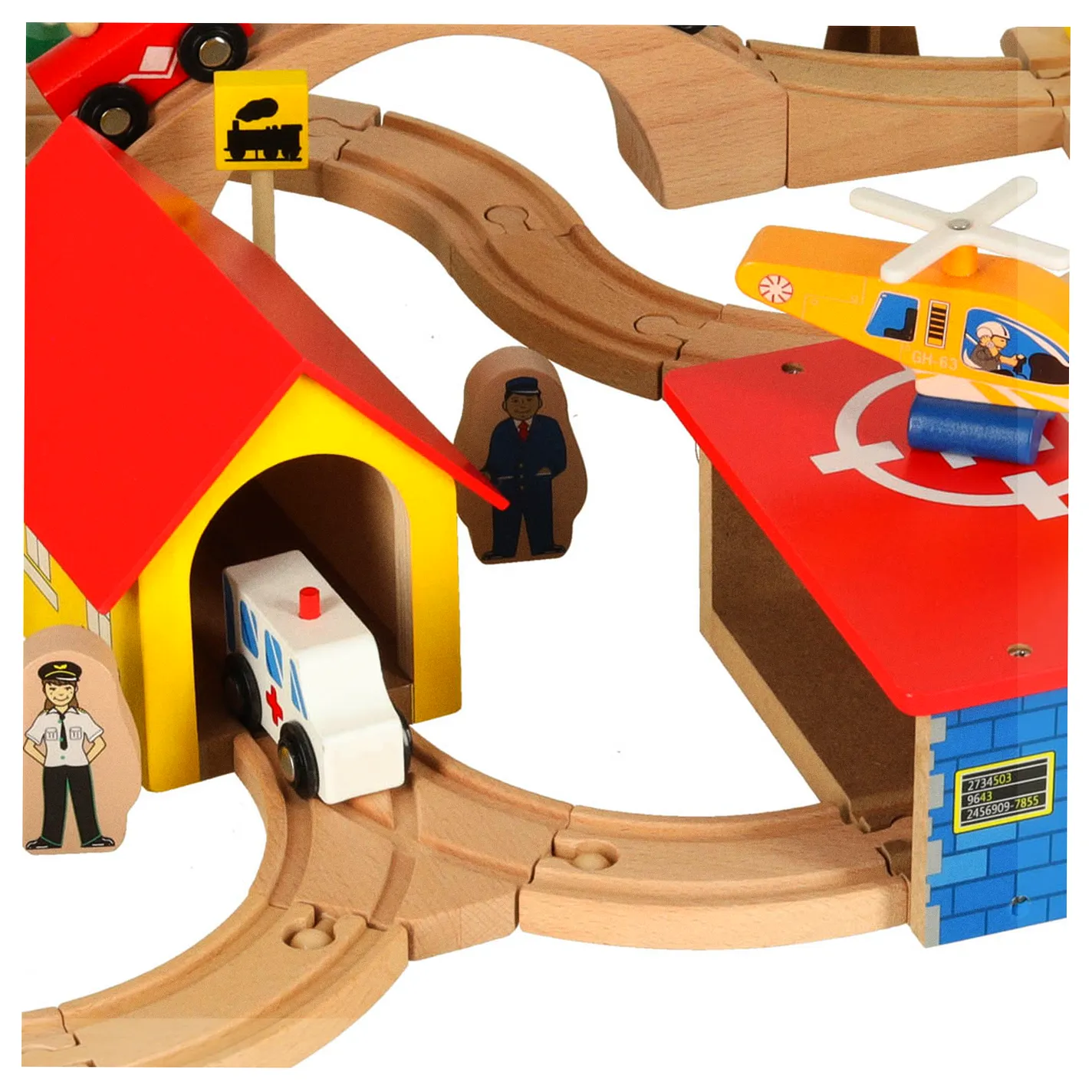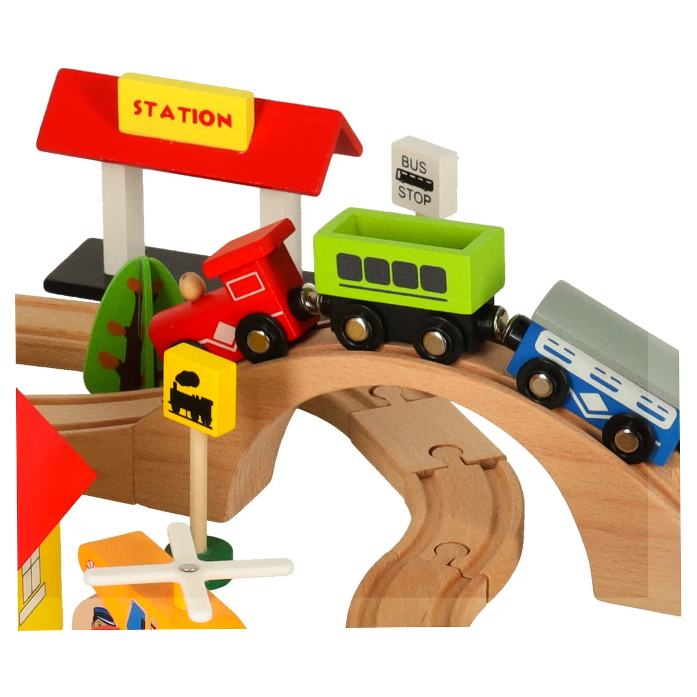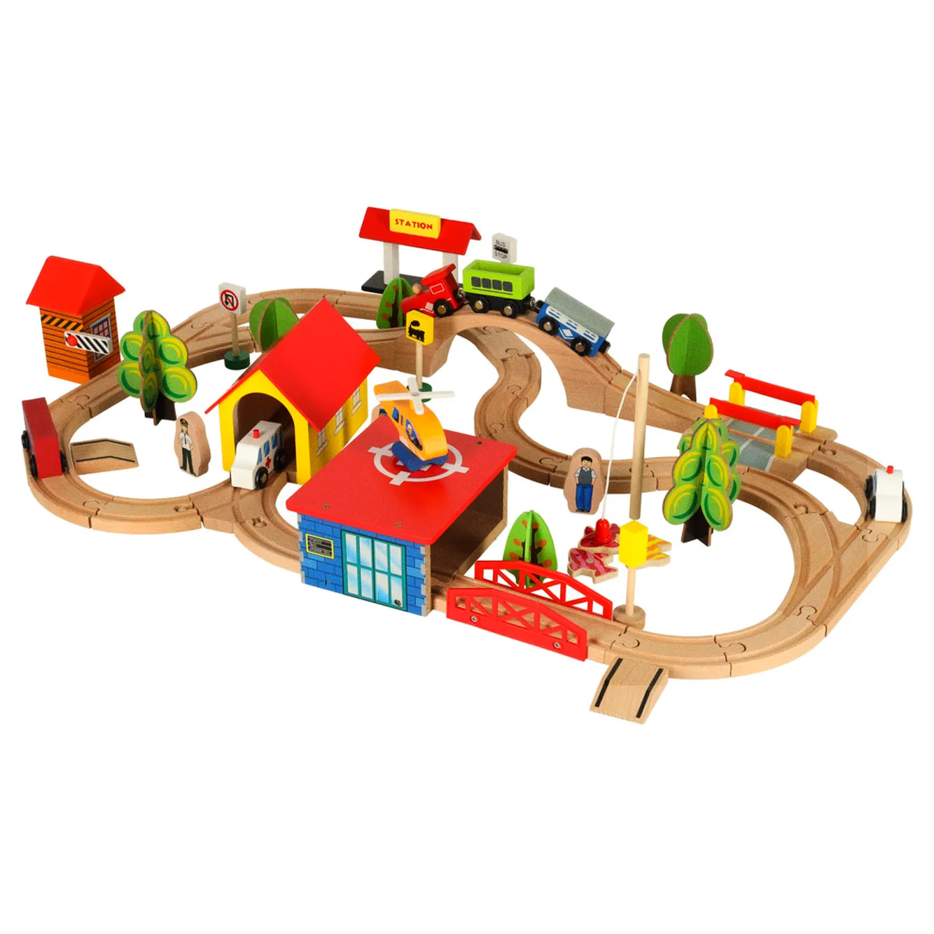 Kolejka drewniana pociąg lokomotywa miasto 69 elementów