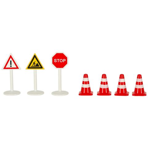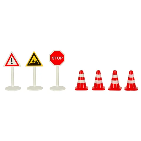 Na jednym pagórku znajduje się dźwig, który pomaga w rozładowaniu lub załadowaniu ładunku z pociągu – scenariusz zabawy zależy od wyobraźni dziecka. Akcesoria takie jak znaki drogowe, pachołki, drzewka i figurki pozwalają na uzupełnienie scenerii wokół zbudowanego toru.